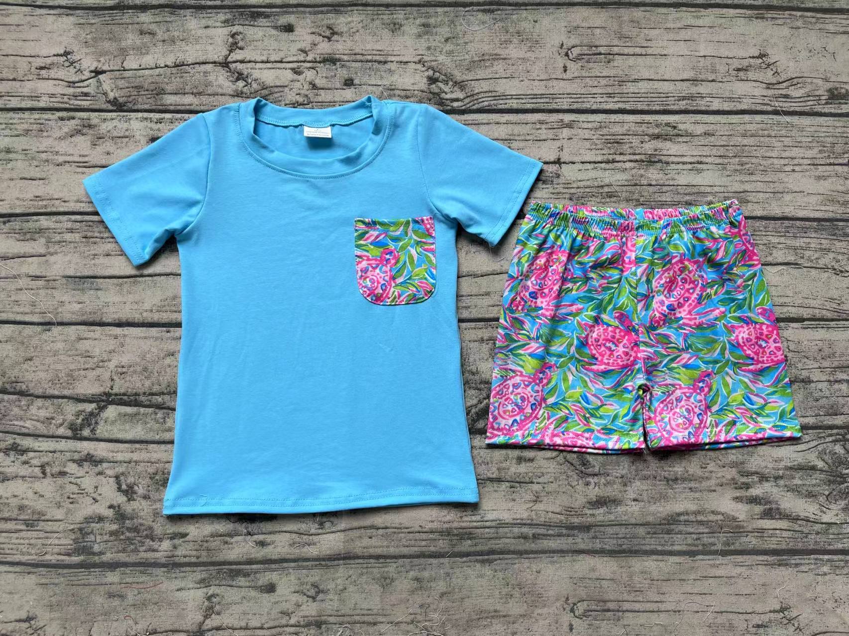 Baby Boys Blue Short Sleeve Tee Shirts Tops Turtle Shorts Clothes Sets