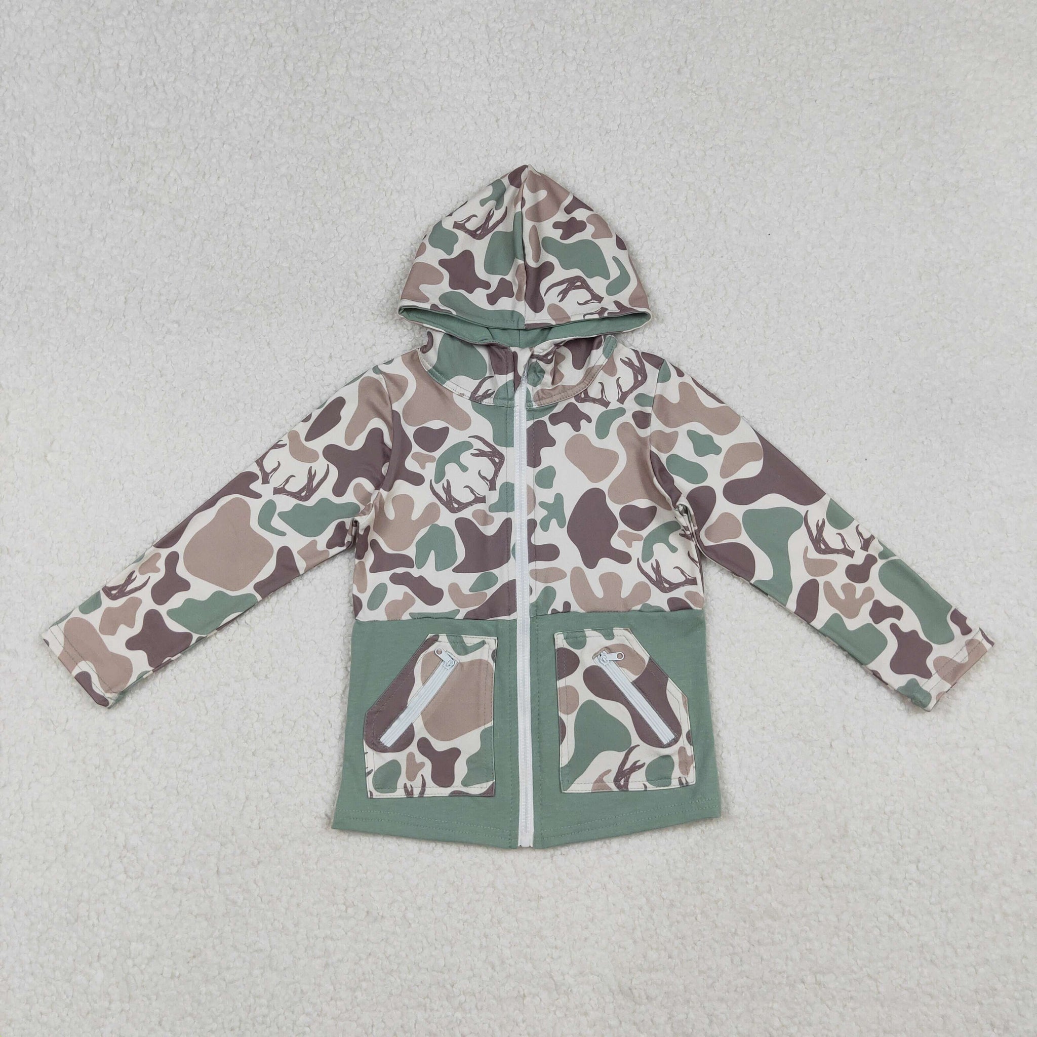 Baby Boys Brown Deer Camo Pocket Zipper Western Hoodies Top Preorder