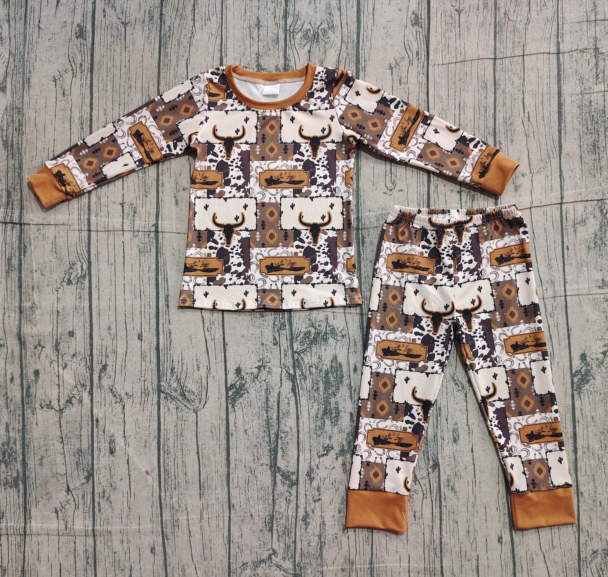 Baby Boys Bull Skull Aztec Checked Top Pants Western Pajamas Set