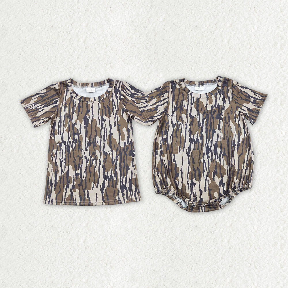 Baby Boys Camo Branches Short Sleeve Tee Shirts Tops Rompers Brother Designs