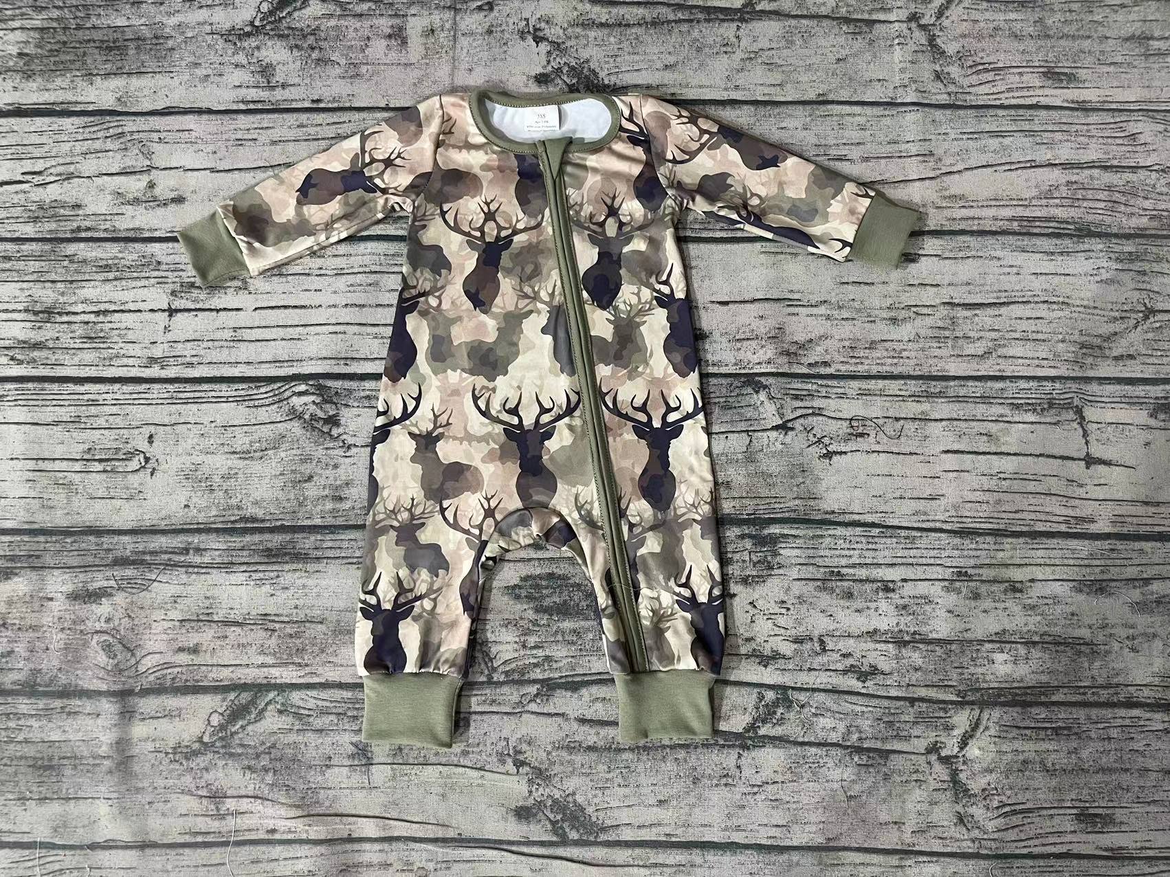 • Load image into Gallery viewer, Baby Boys Camo Deer Zip Long Sleeve Rompers