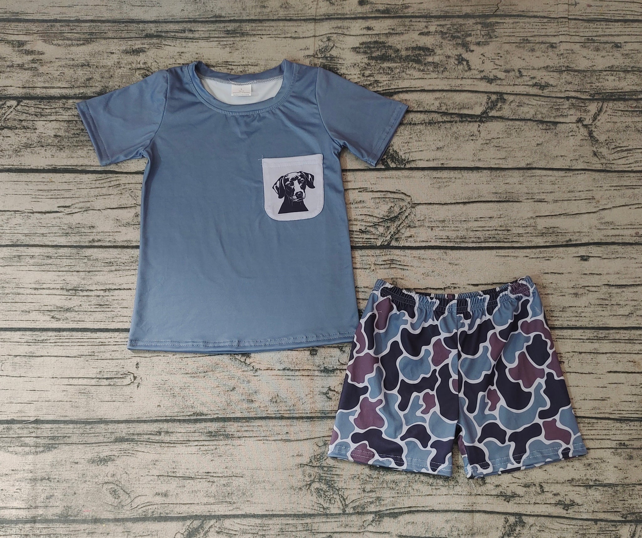 • Load image into Gallery viewer, Baby Boys Camo Dog Pocket Shirt Shorts Clothes Sets