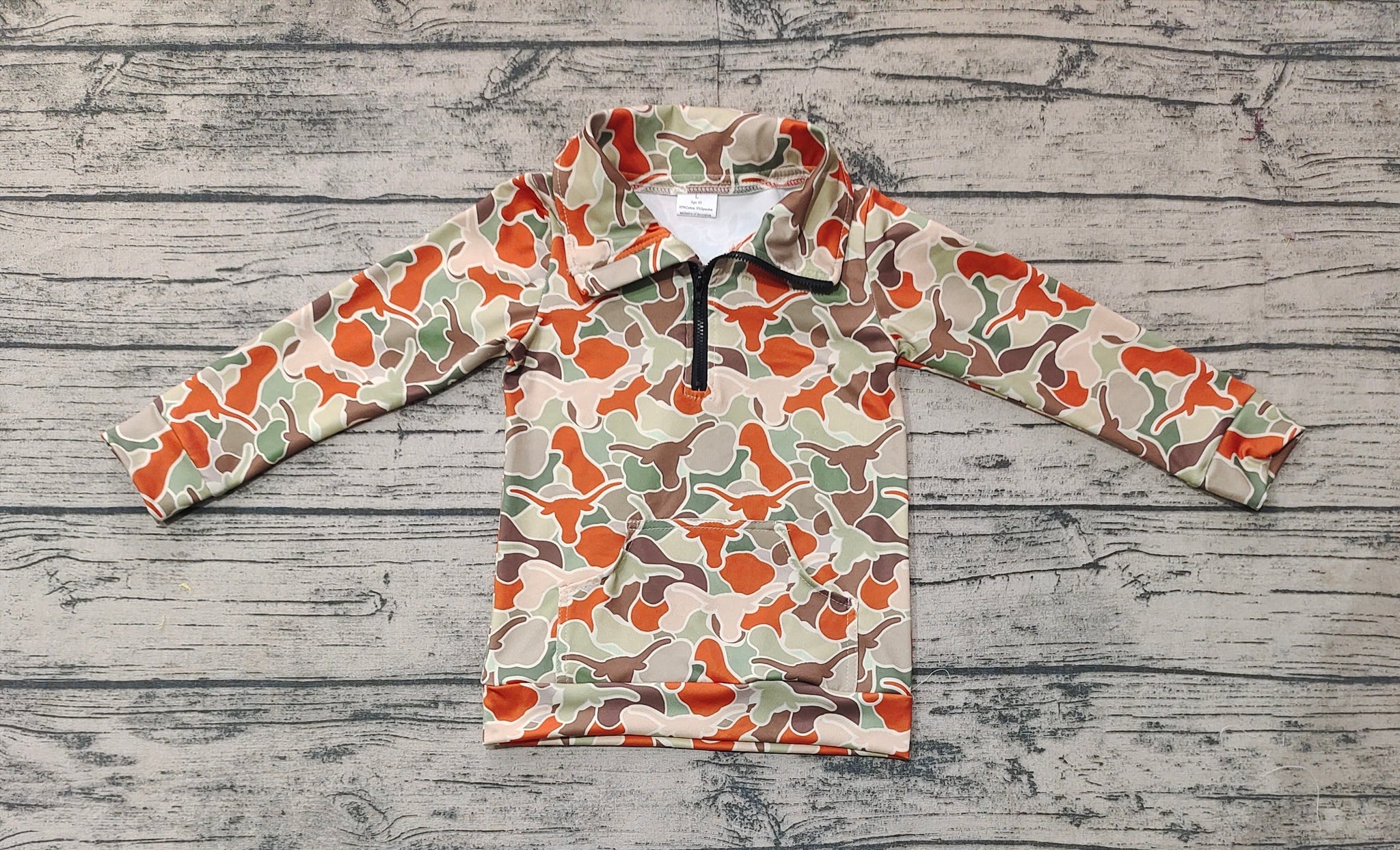 Baby Boys Camo Longhorn Long Sleeve Zip Pullovers Tops