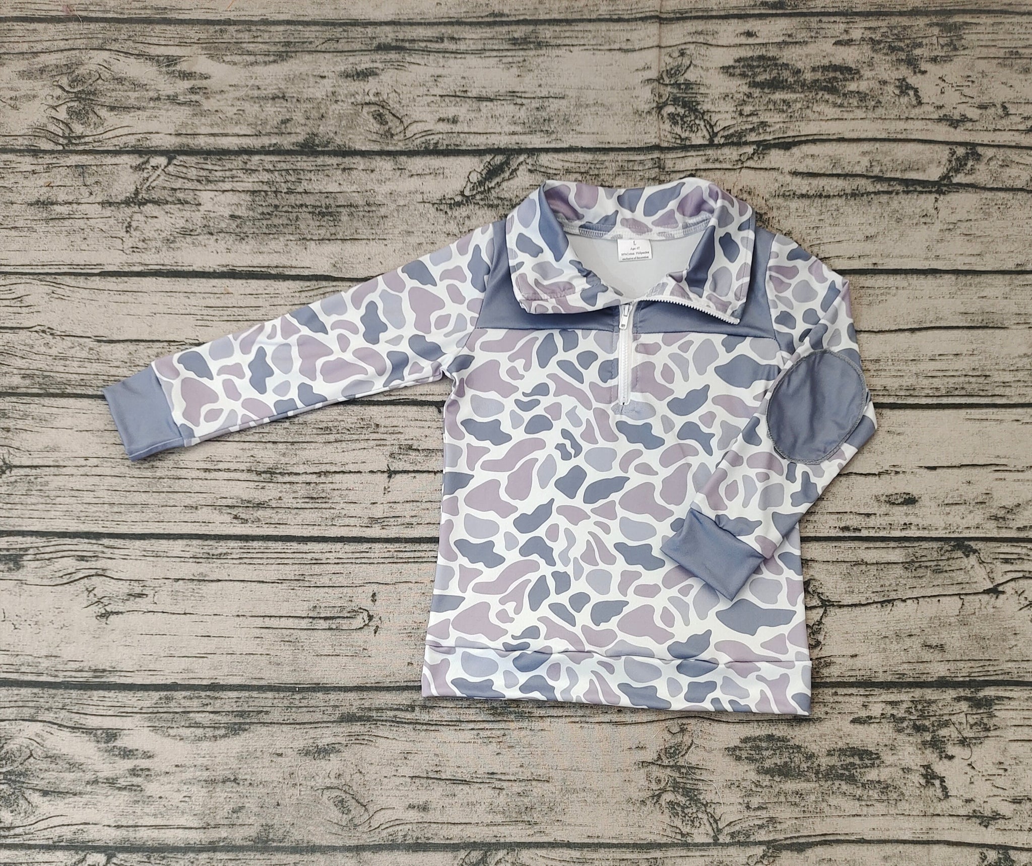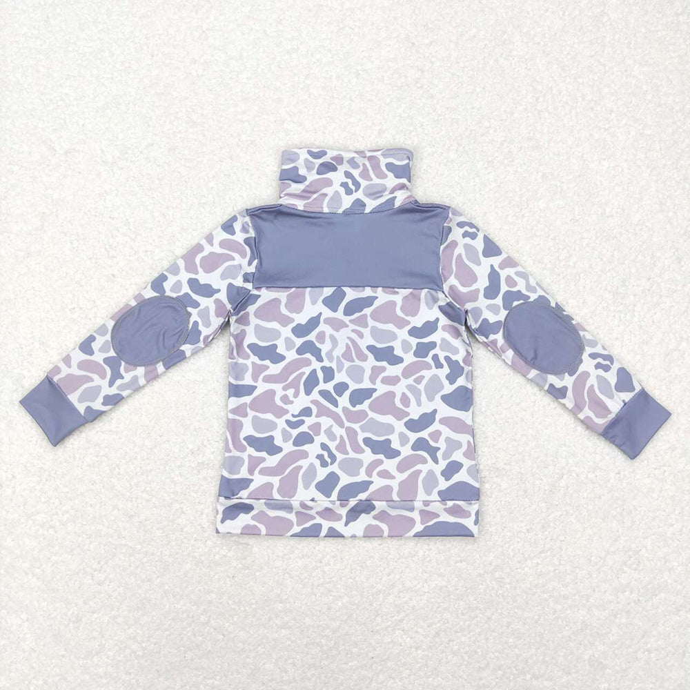 Baby Boys Camo Zip Long Sleeve Patchwork Pullovers Tops