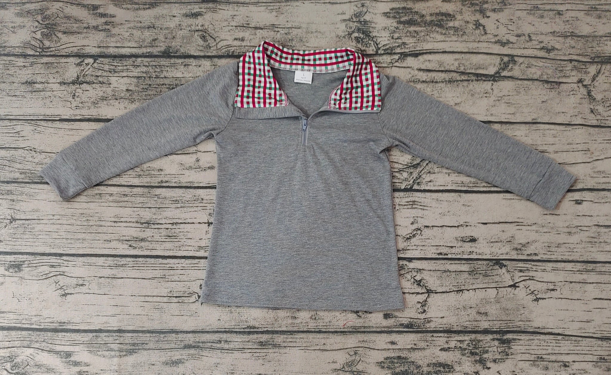 Baby Boys Christmas Plaid Long Sleeve Pullover Tee Shirt Tops