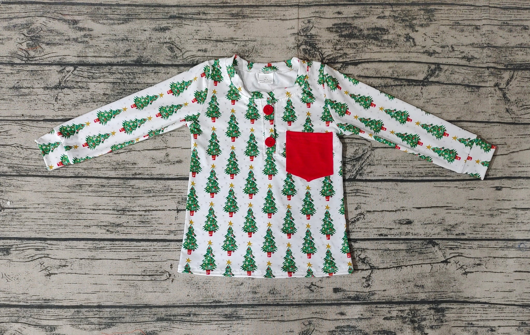 Baby Boys Christmas Tree Pocket Long Sleeve Tee Shirt Tops