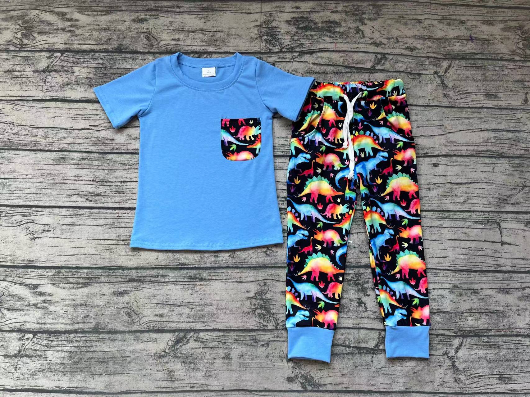 Baby Boys Colorful Dinosaur Pocket Tee Pants Clothes Sets