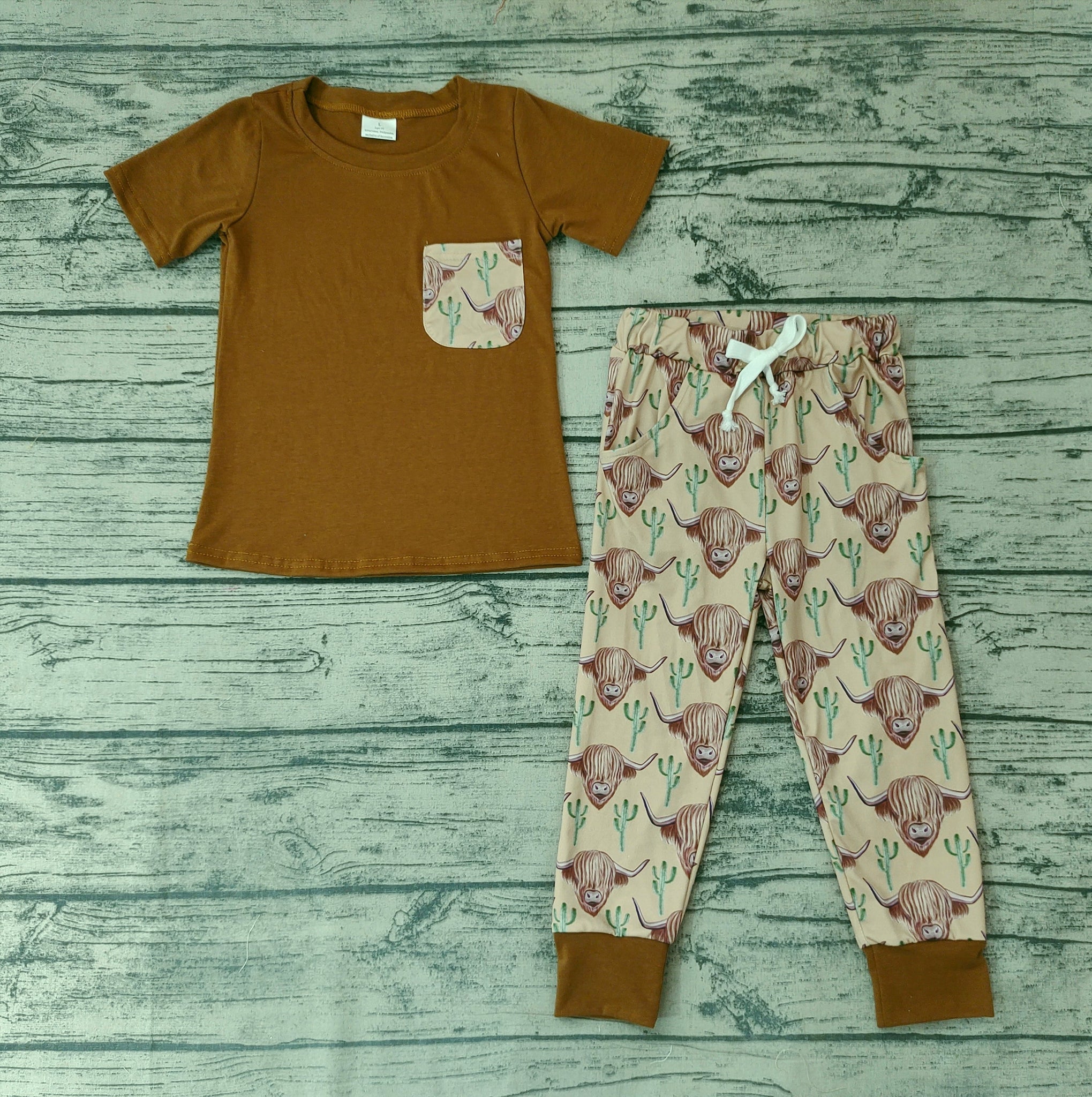 Baby Boys Cow Cactus Pocket Top Pants Clothes Sets