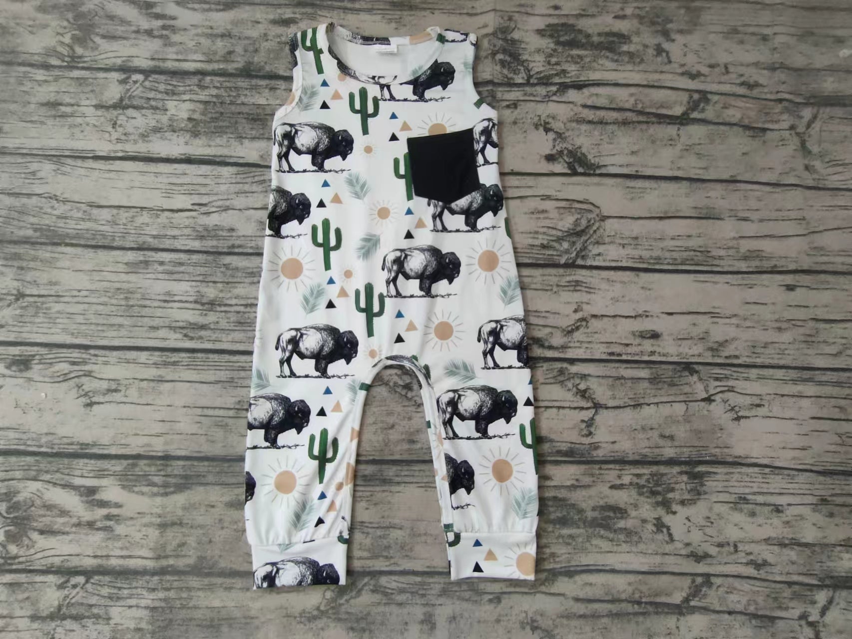 • Load image into Gallery viewer, Baby boys cow western cactus rompers