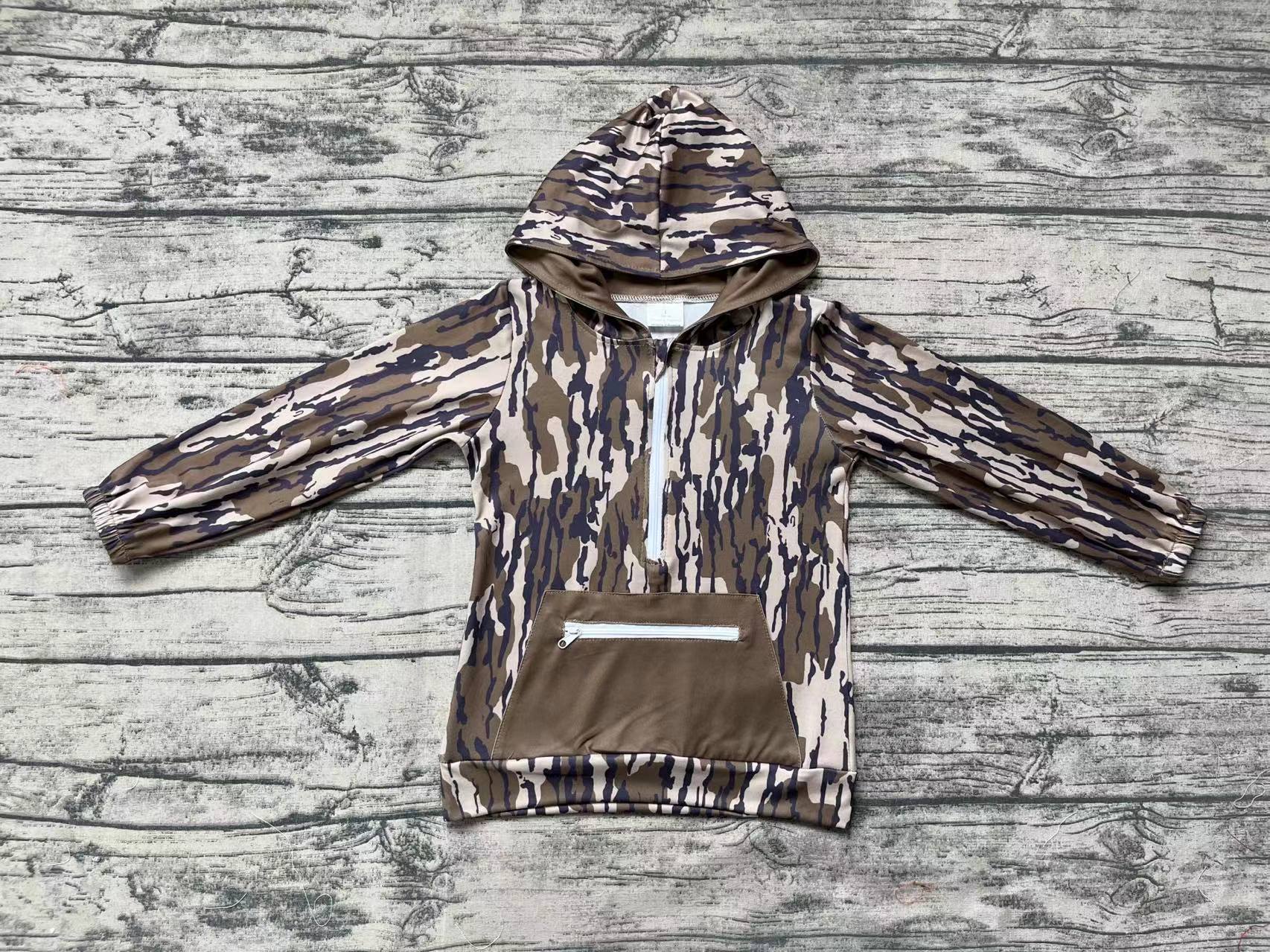 Baby Boys Dark Green Camo Hooded Zip Pocket Fall Pullovers Tops