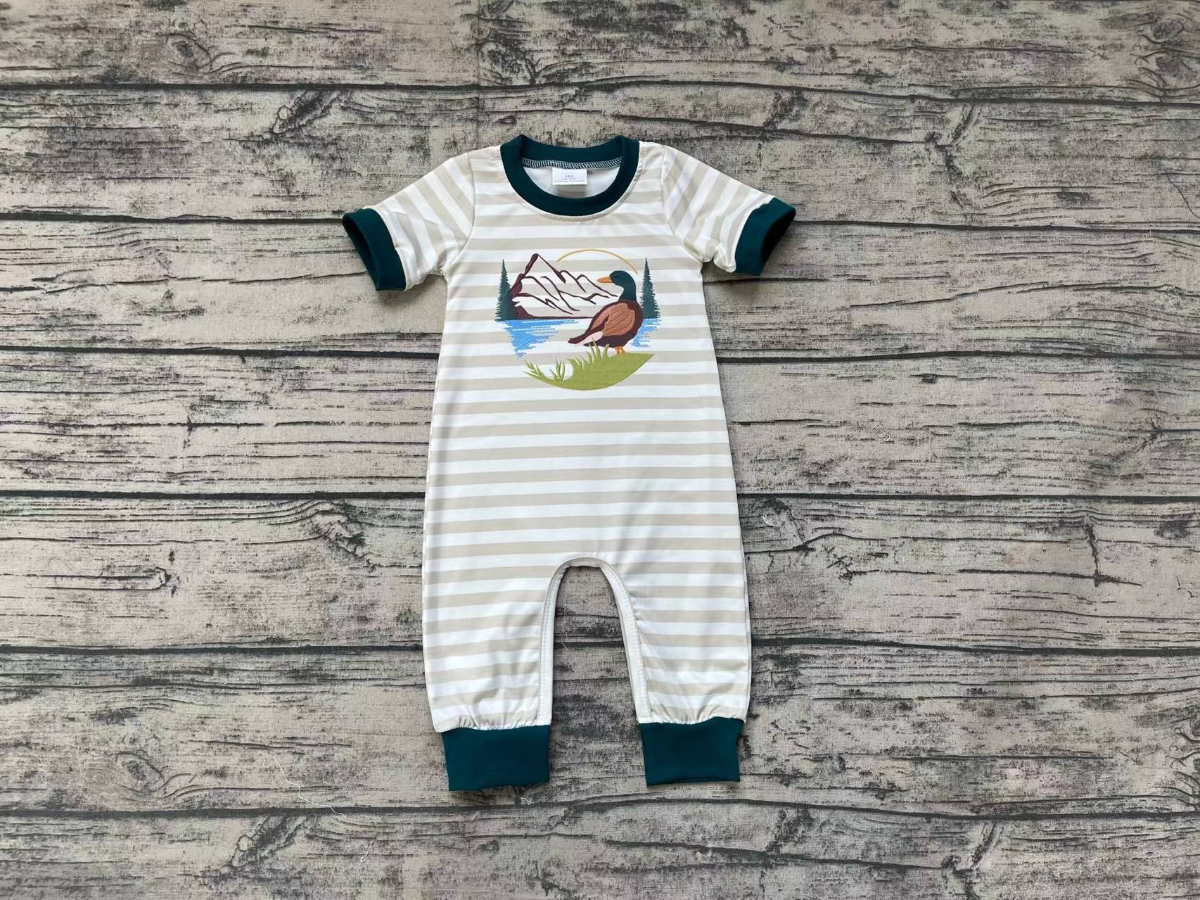 • Load image into Gallery viewer, Baby Boys Duck Hunting Khaki Stripes Short Sleeve Rompers