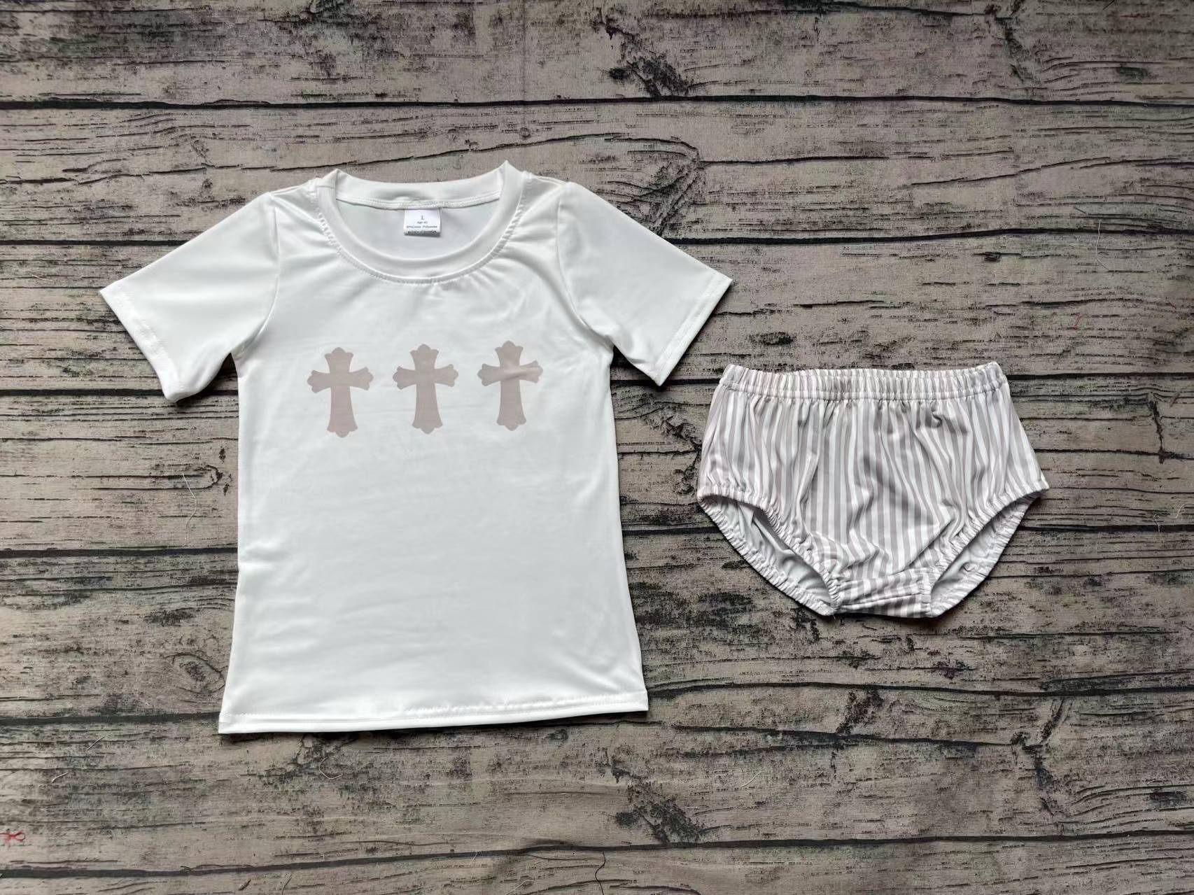 Baby Boys Easter Cross White Shirt Tee Bummies Clothes Sets