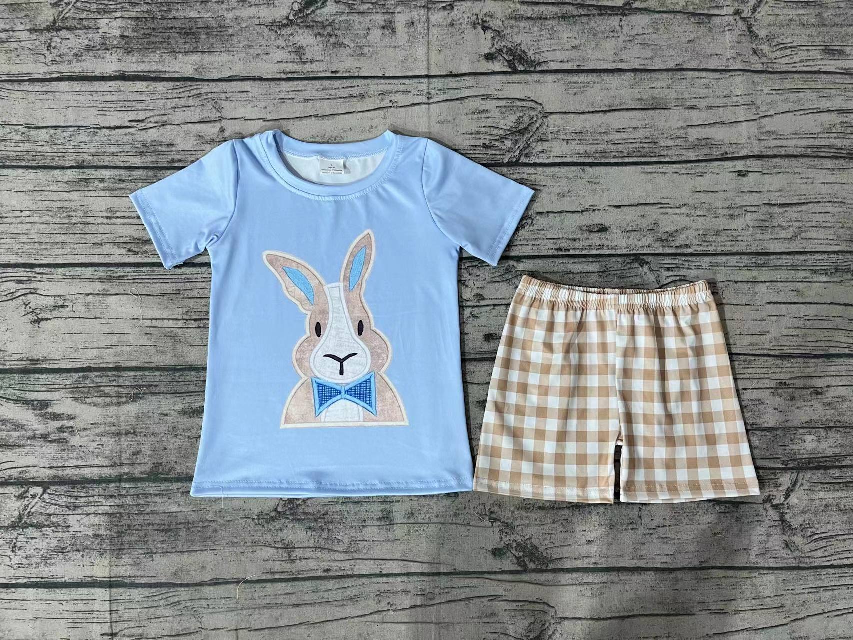 Baby Boys Easter Rabbit Tee Shirt Khaki Checkered Shorts Clothes Sets