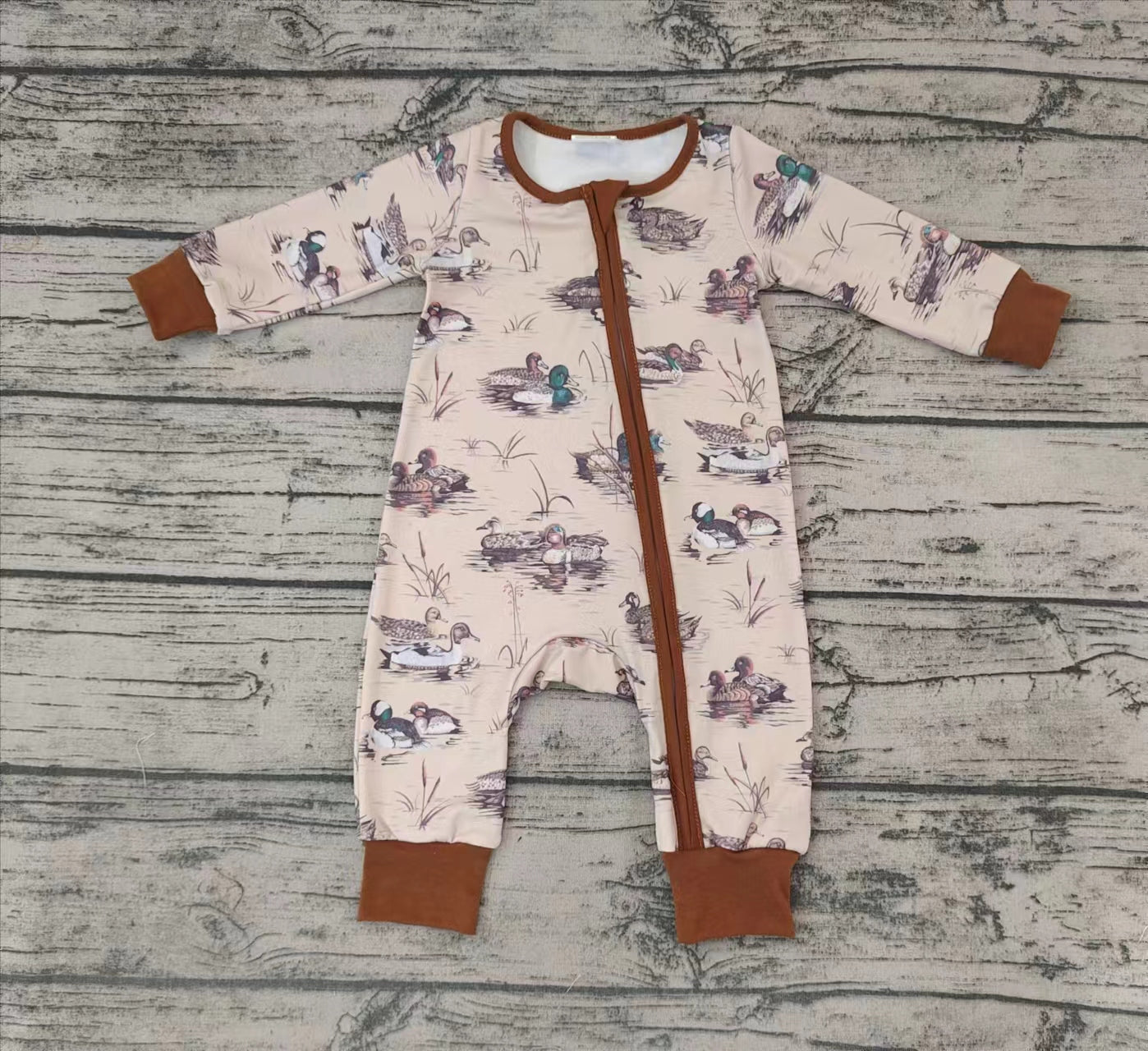 • Load image into Gallery viewer, Baby Boys Fall Grey Duck Long Sleeve Zip Rompers