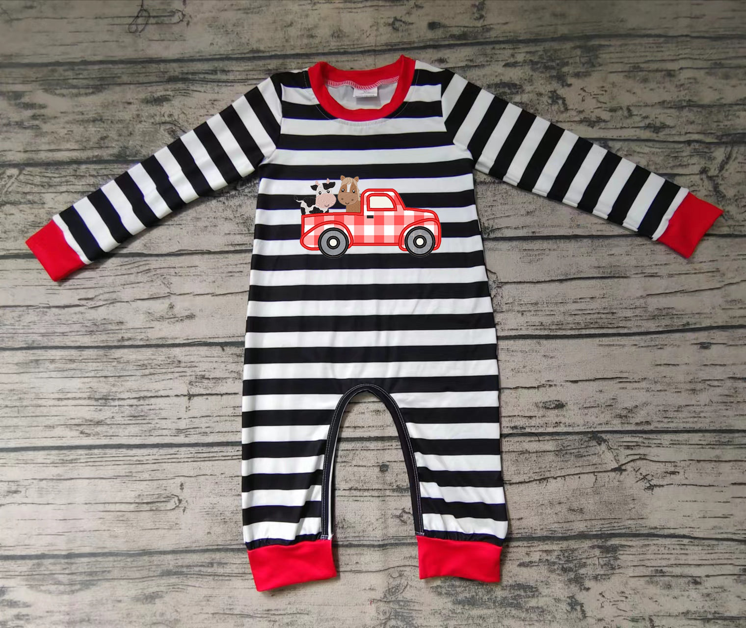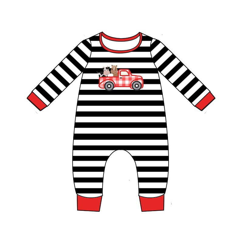 Baby boys farm tractor stripe ruffle rompers