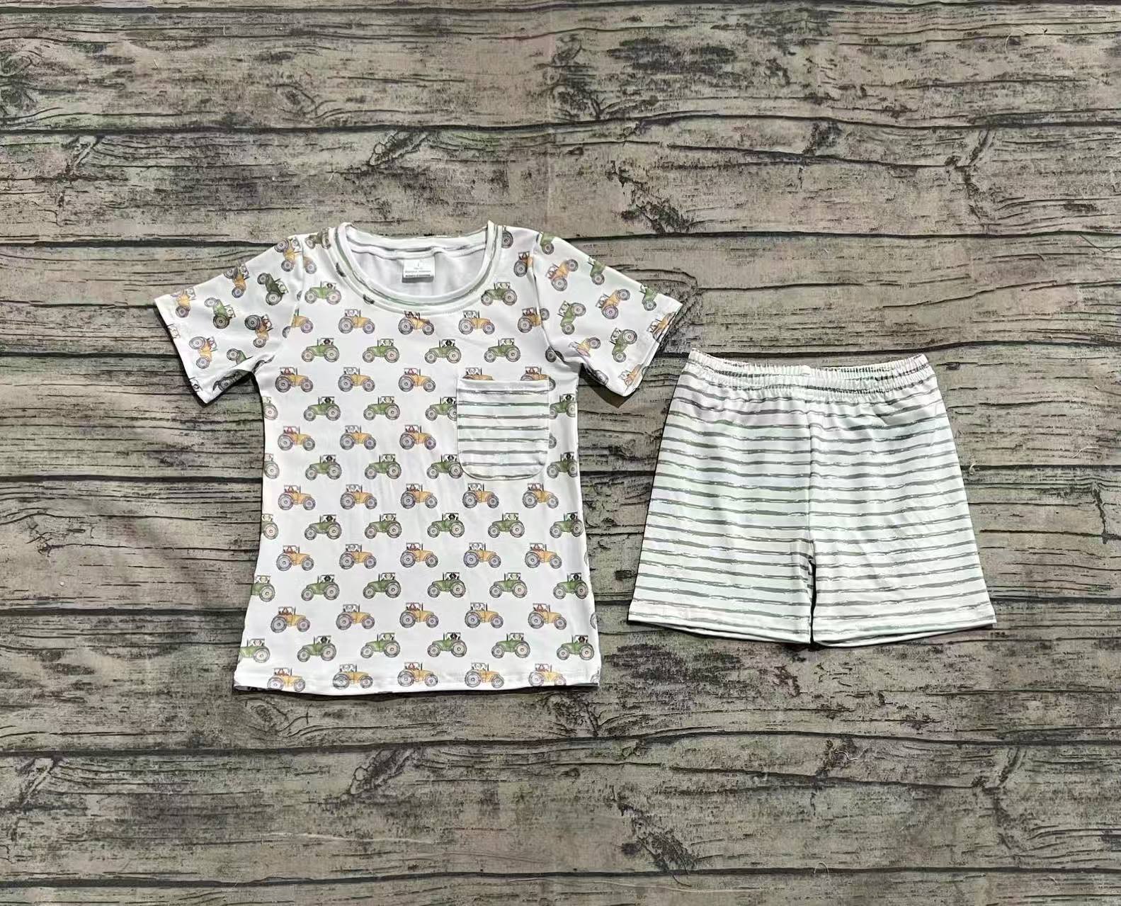 Baby Boys Farm Trucks Pocket Shirt Top Tee Shorts Clothes Sets