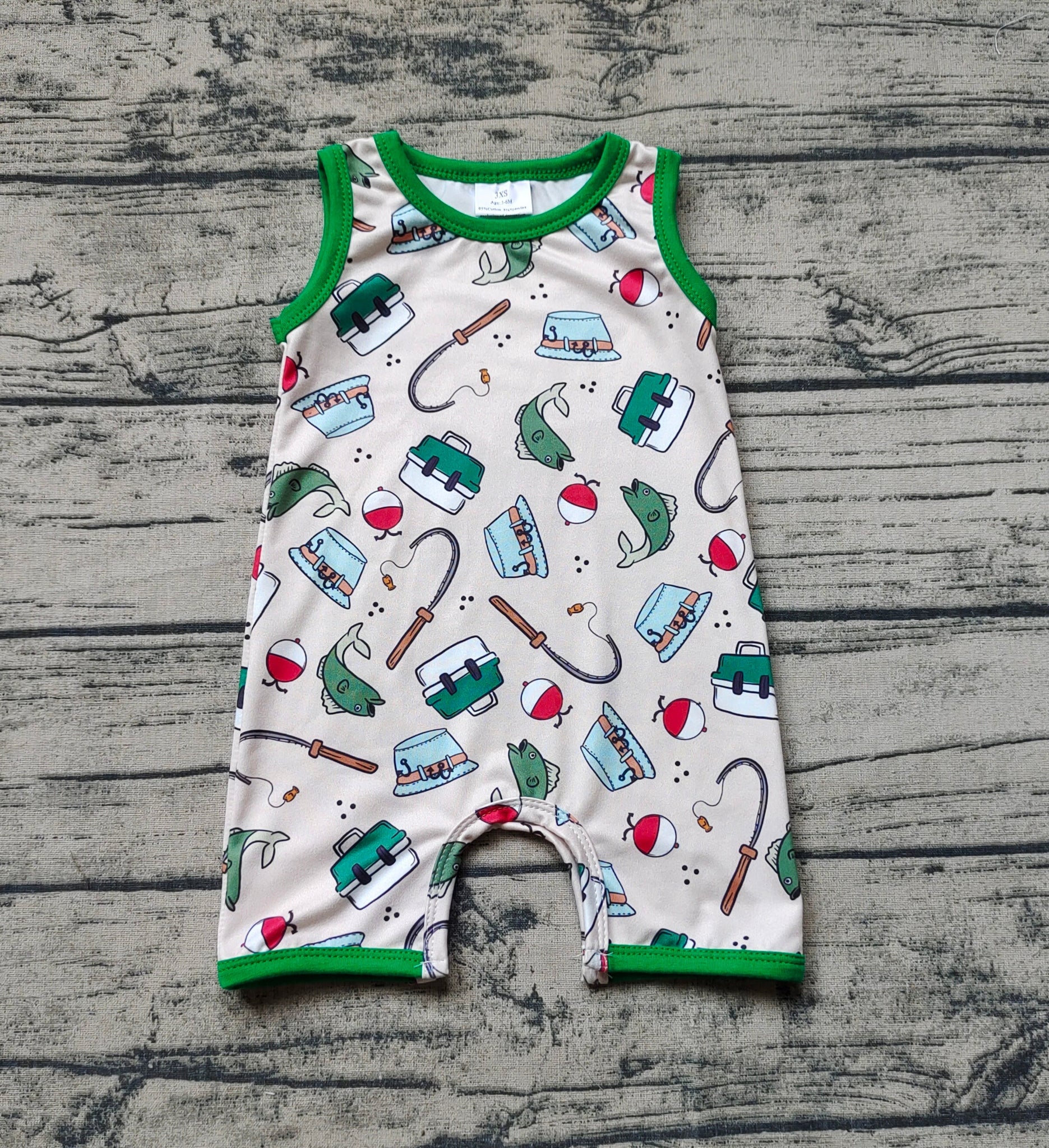 • Load image into Gallery viewer, Baby Boys Fishing Green Sleeveless Rompers