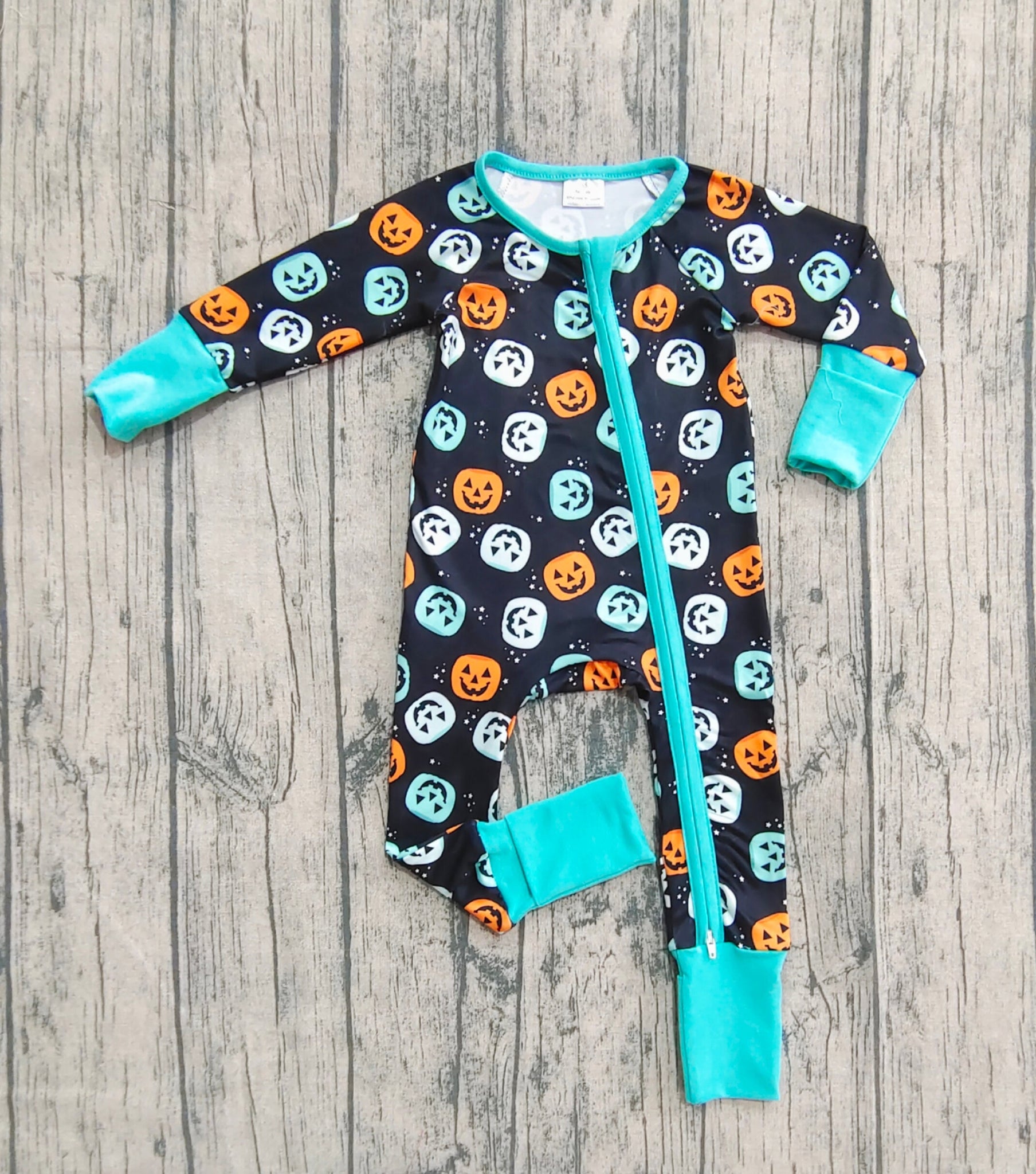 Baby Boys Ghost Pumpkins Fall Zipper Footie Rompers