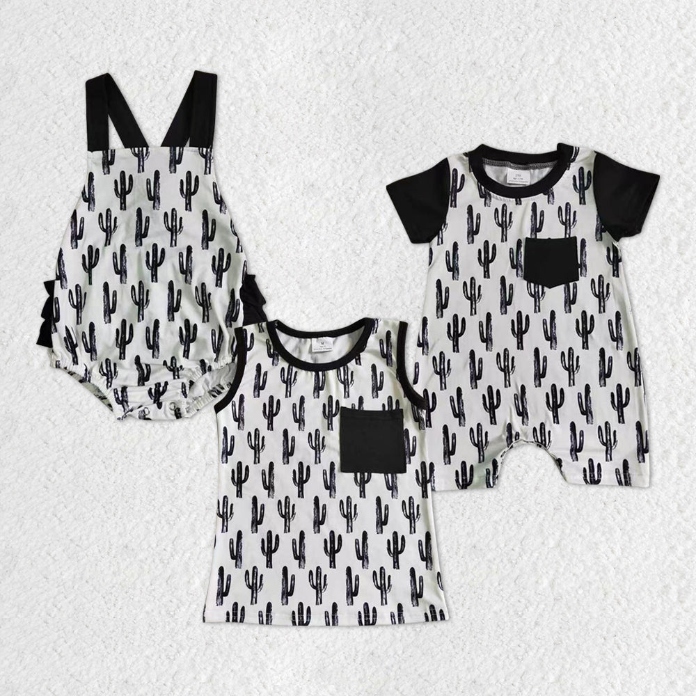 Baby Boys Girls Black Cactus Rompers Shirts Sibling Designs Clothing