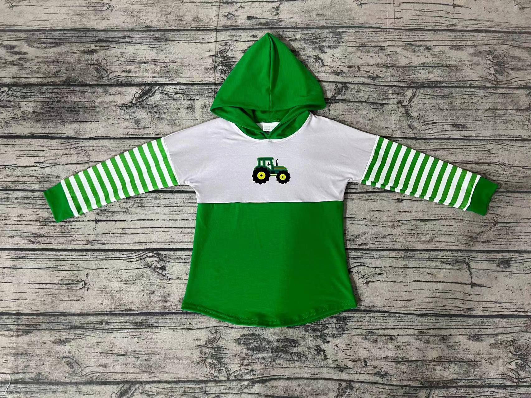 Baby Boys Girls Long Sleeve Hooded Green Tractor Tee Shirts Tops