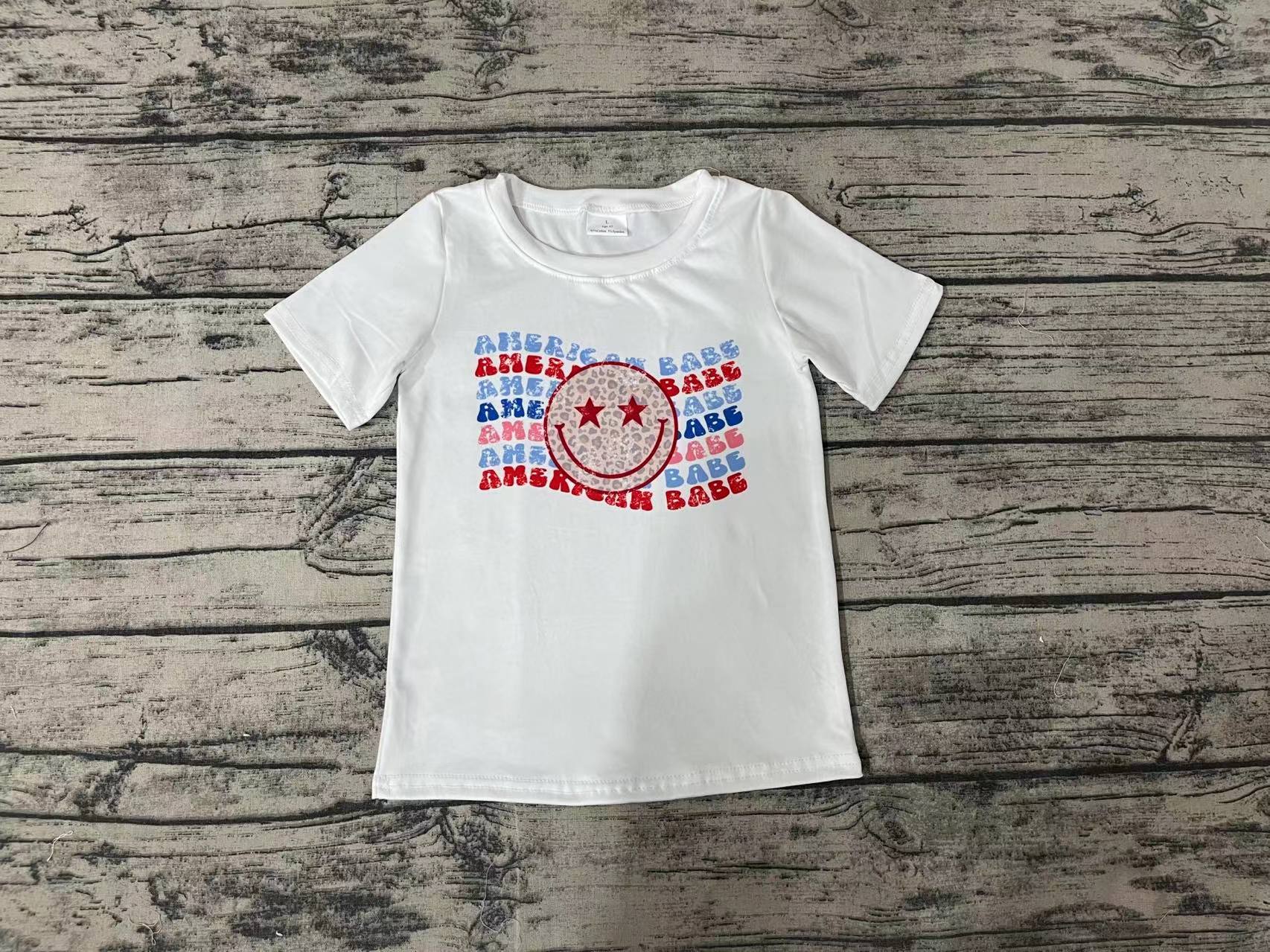 Baby Boys Girls White 4th Of July American Babe Smile Short Sleeve Tee Shirts Tops