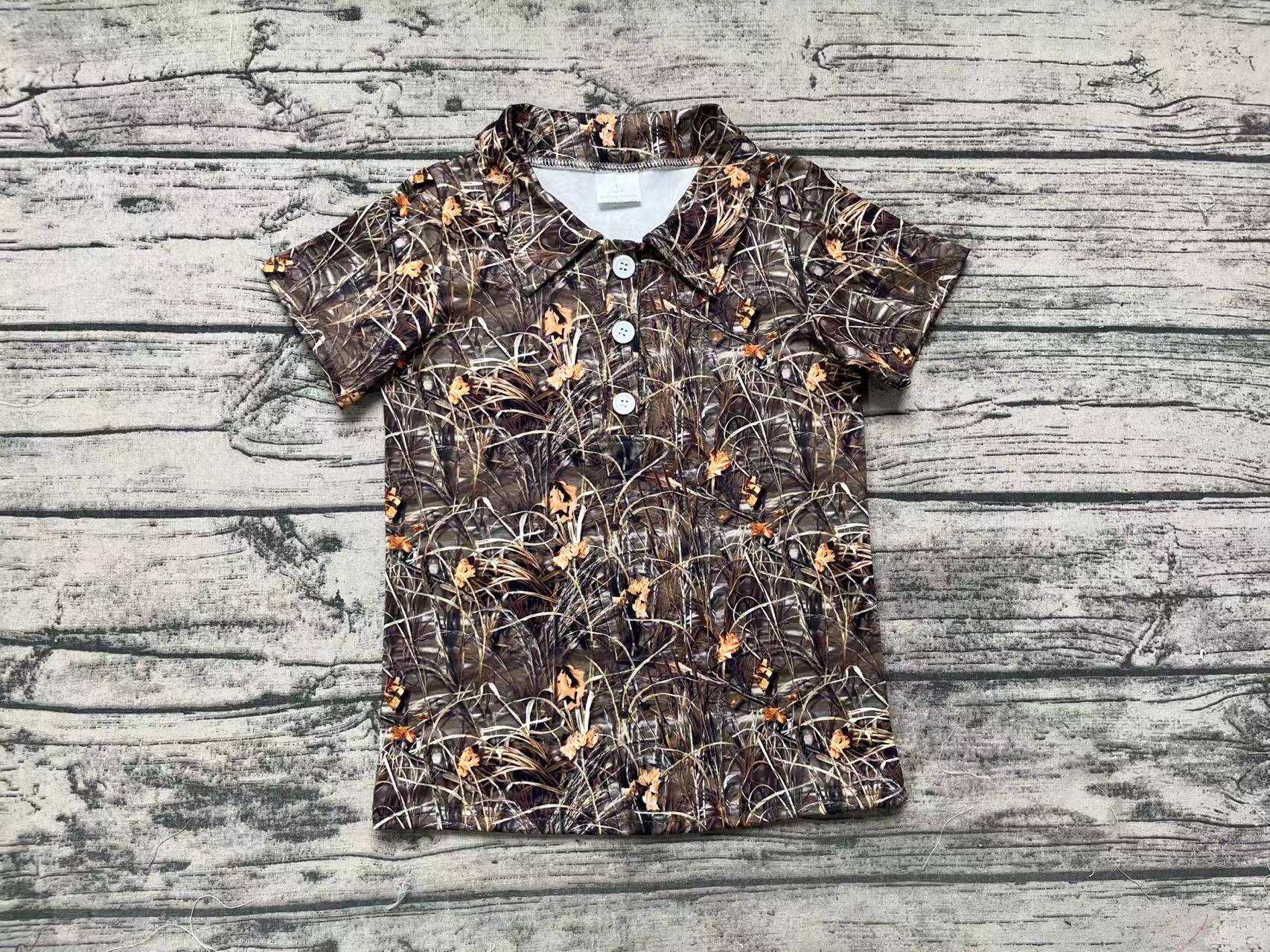 Baby Boys Green Camo Grasses Short Sleeve Buttons Tee Shirts Tops