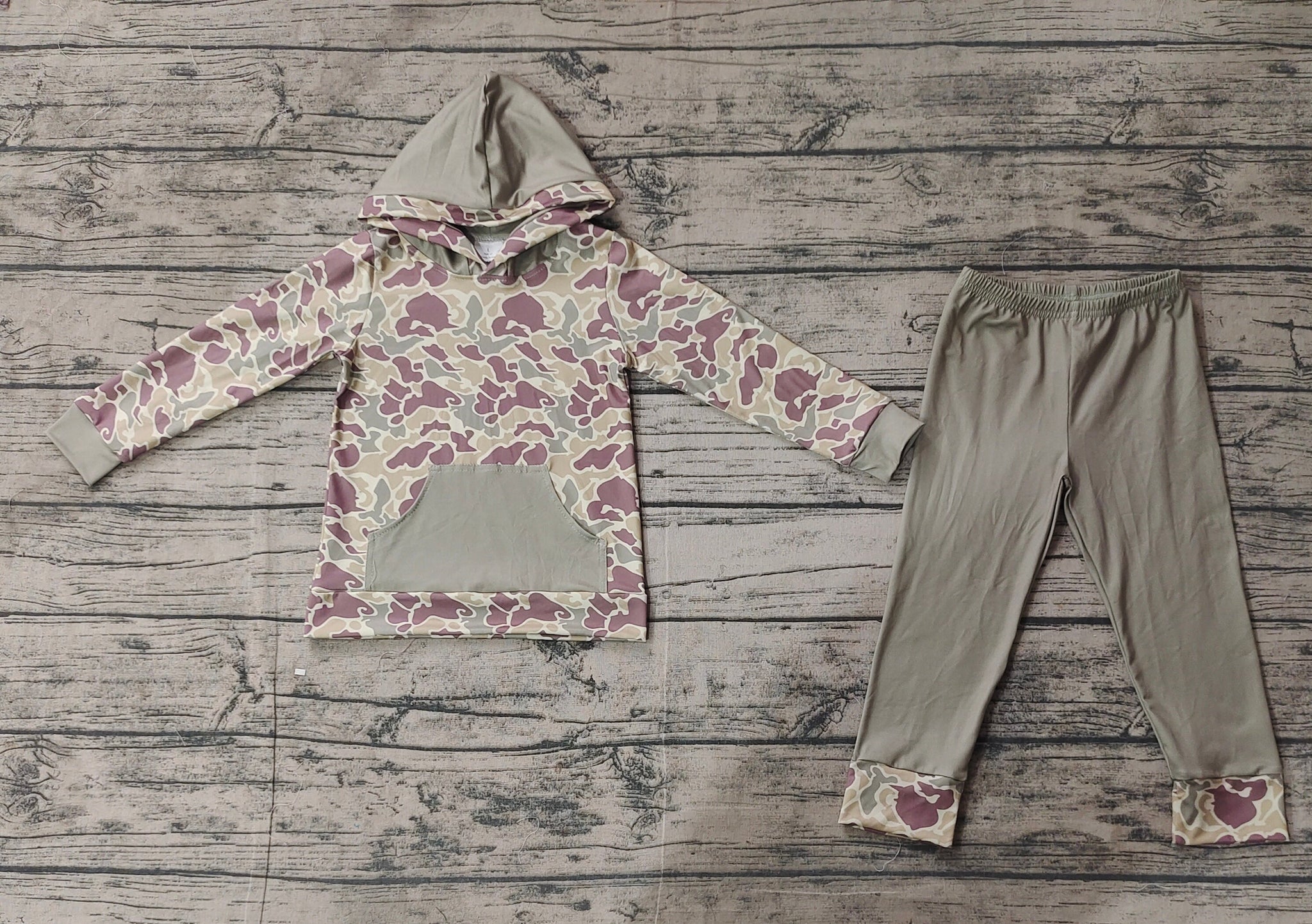 Baby Boys Green Camo Hooded Top Pants Clothes Sets