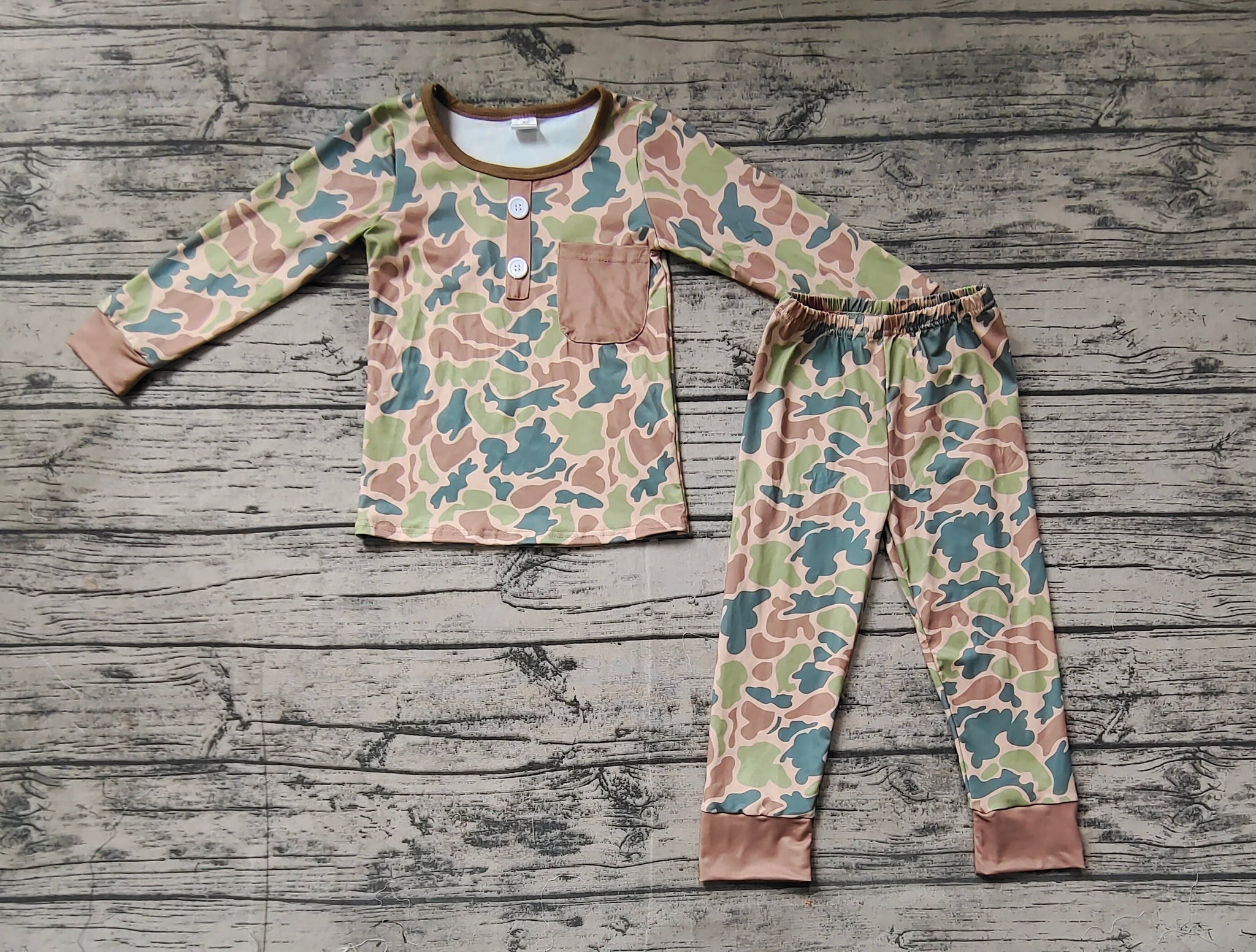 Baby Boys Green Camo Pocket Top Pants Bamboo Pajamas Clothes Sets