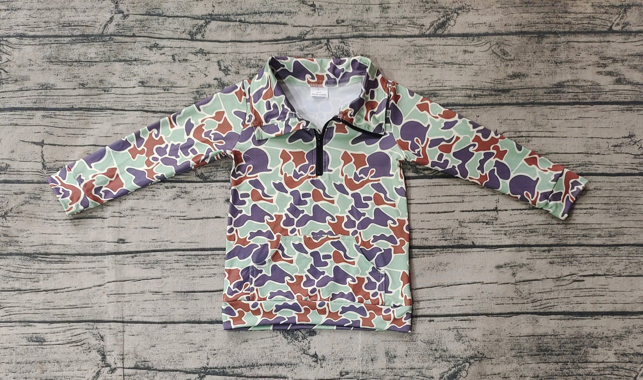 • Load image into Gallery viewer, Baby Boys Green Camo Zip Pocket Pullovers Tops