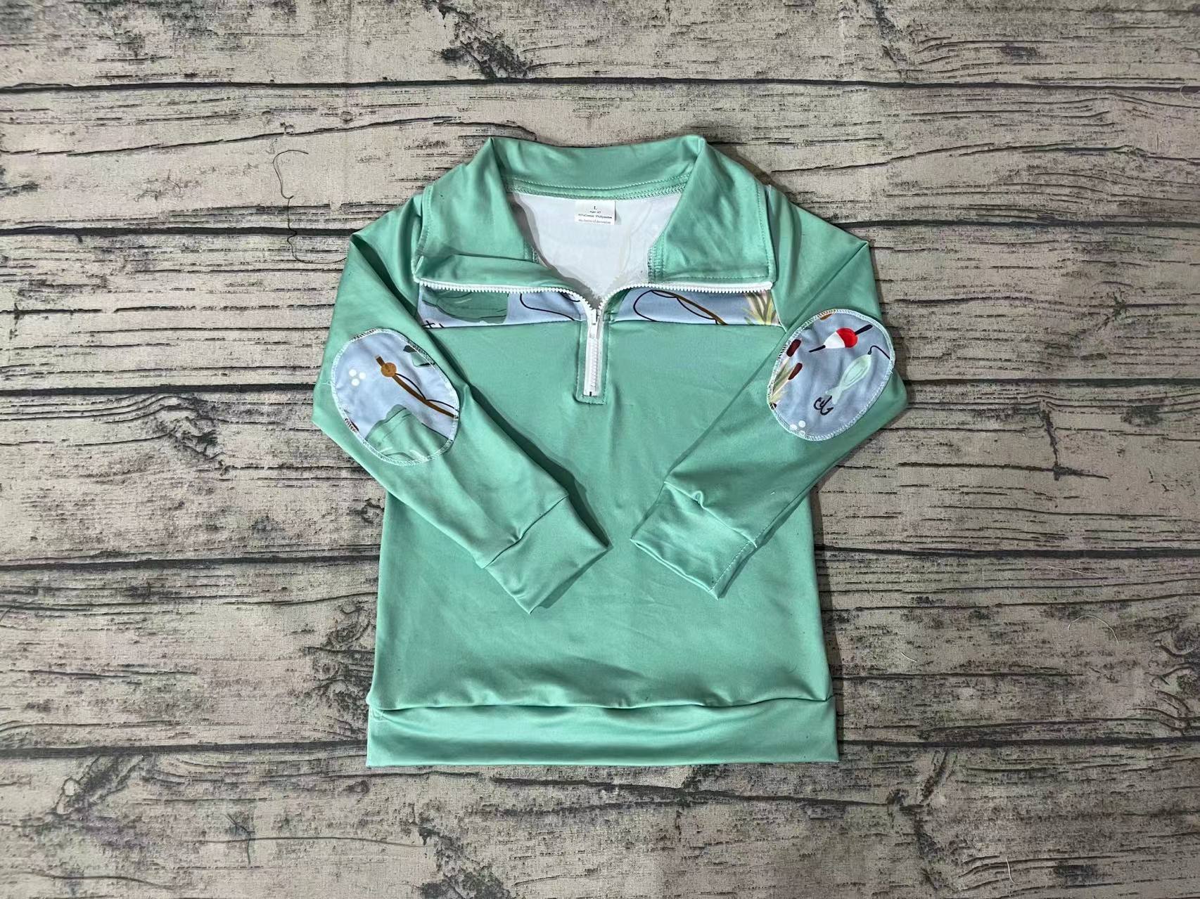 Baby Boys Green Fishing Patchwork Long Sleeve Zip Pullover Tops