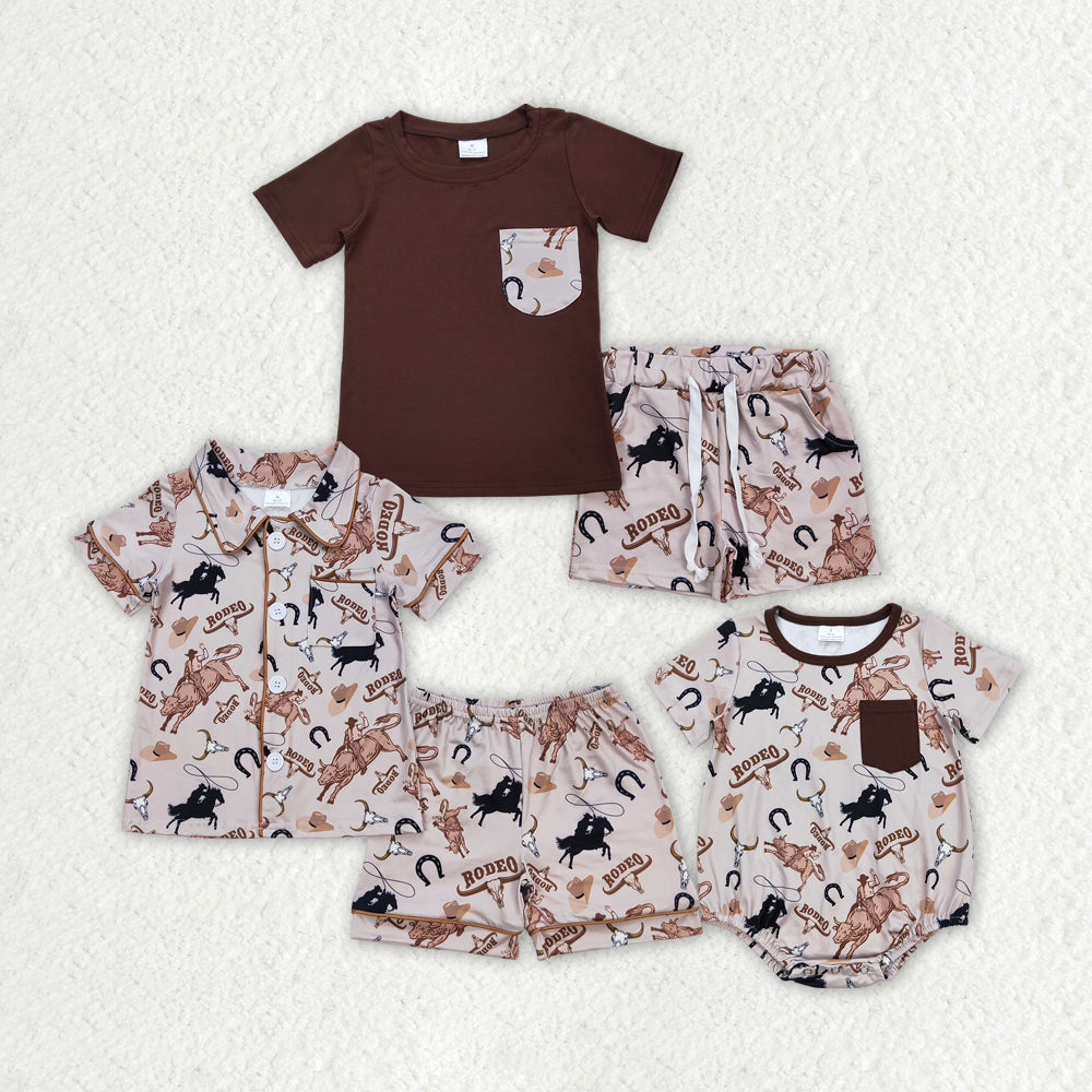 Baby Boys Grey Rodeo Horse Shirt Buttons Top Shorts Brother Romper Pajamas Clothes Sets