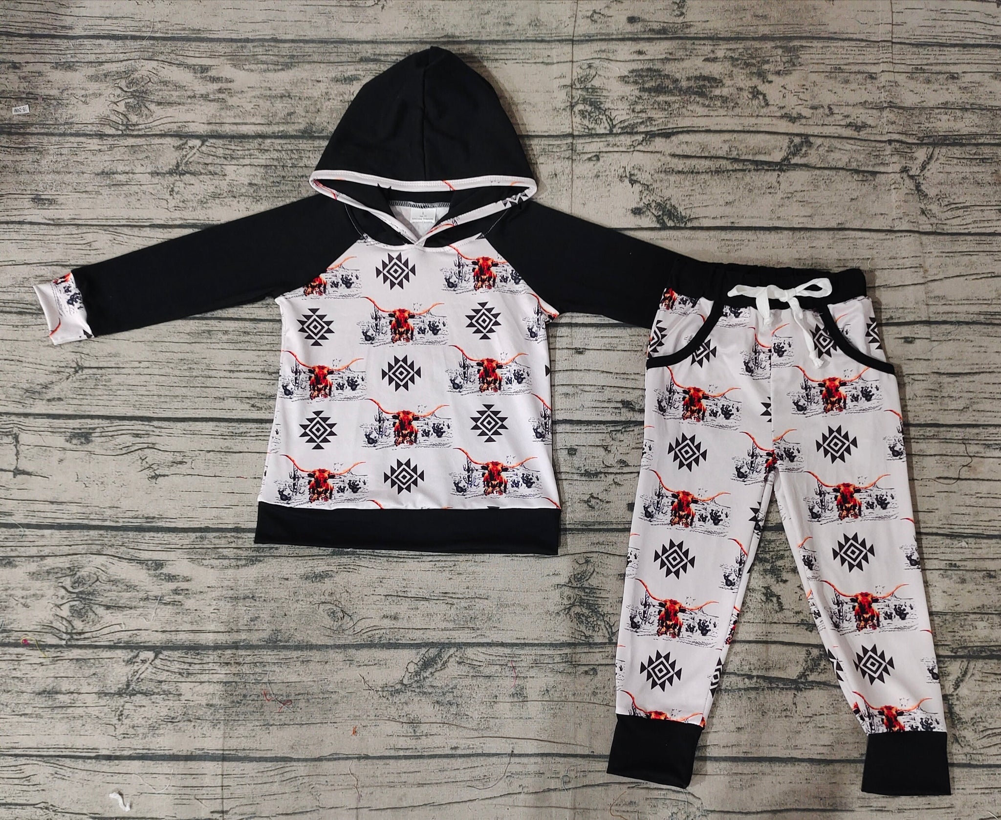 Baby Boys Hooded Western Cows Top Pants Outfits Clothing Sets
