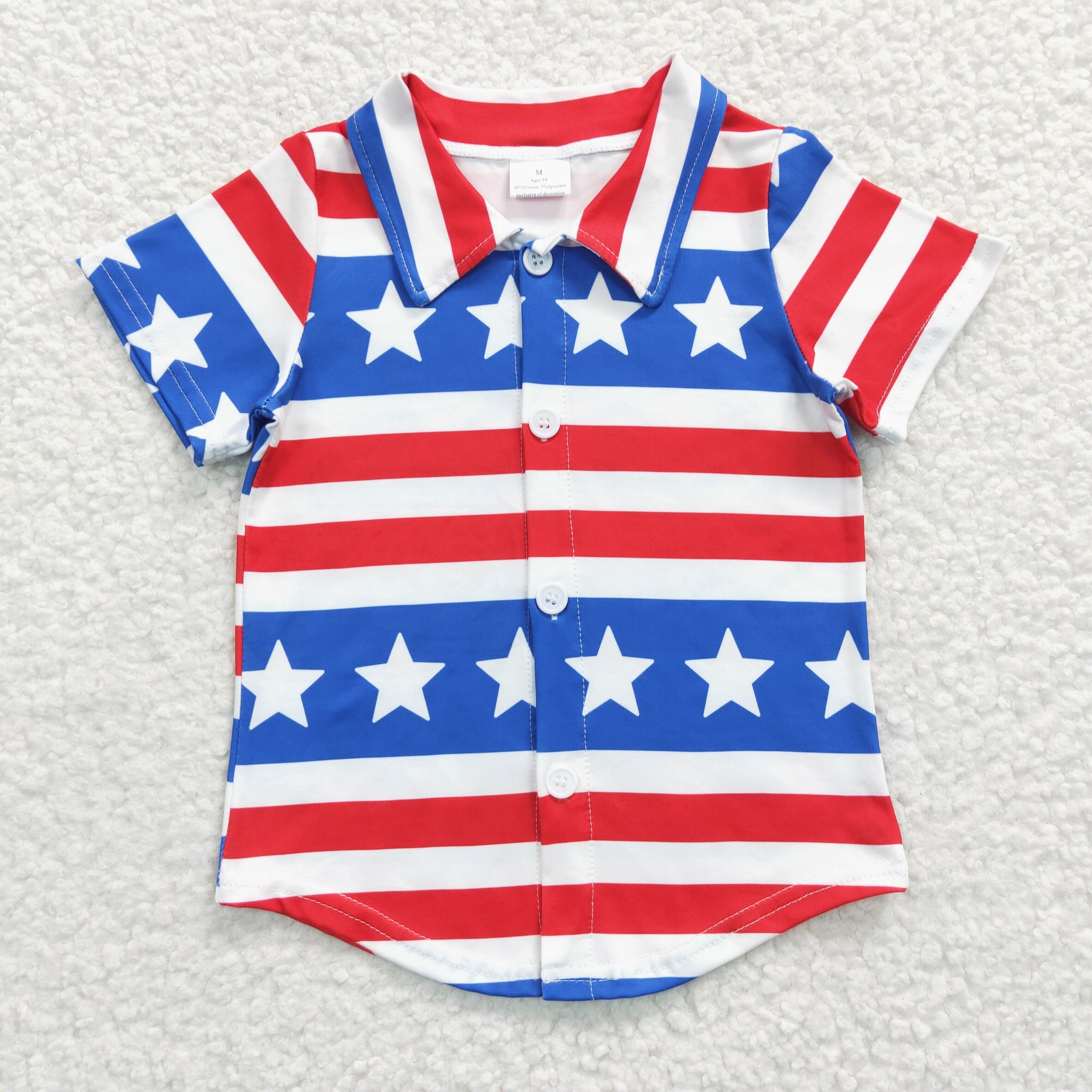 Baby Boys Kids 4th of July Star Stripes Button Ups Shirts Tops