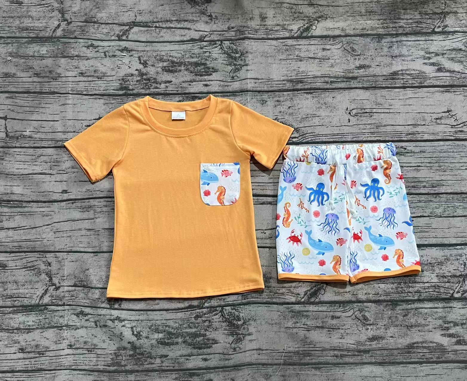 Baby Boys Orange Pocket Top Sea Animals Shorts Clothes Sets