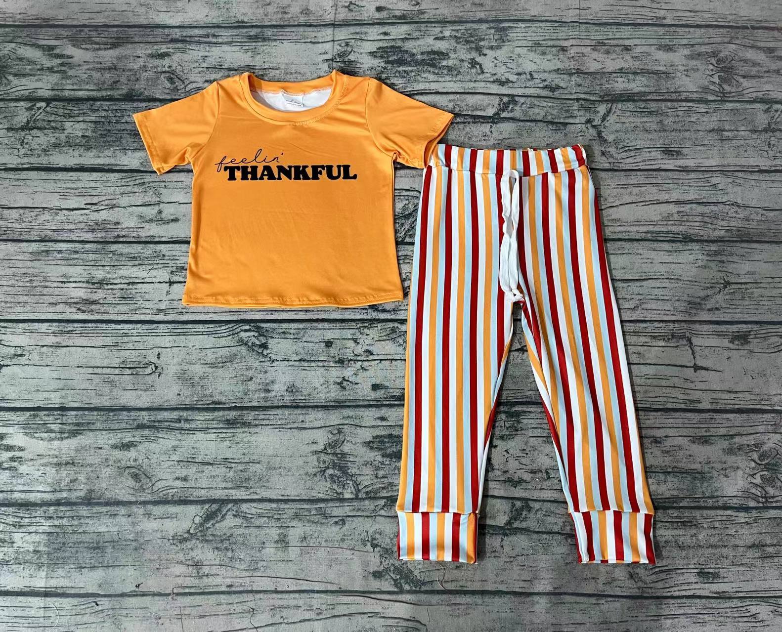 Baby Boys Orange Thankful Tee Thanksgiving Shirt Stripes Pants Clothes Sets