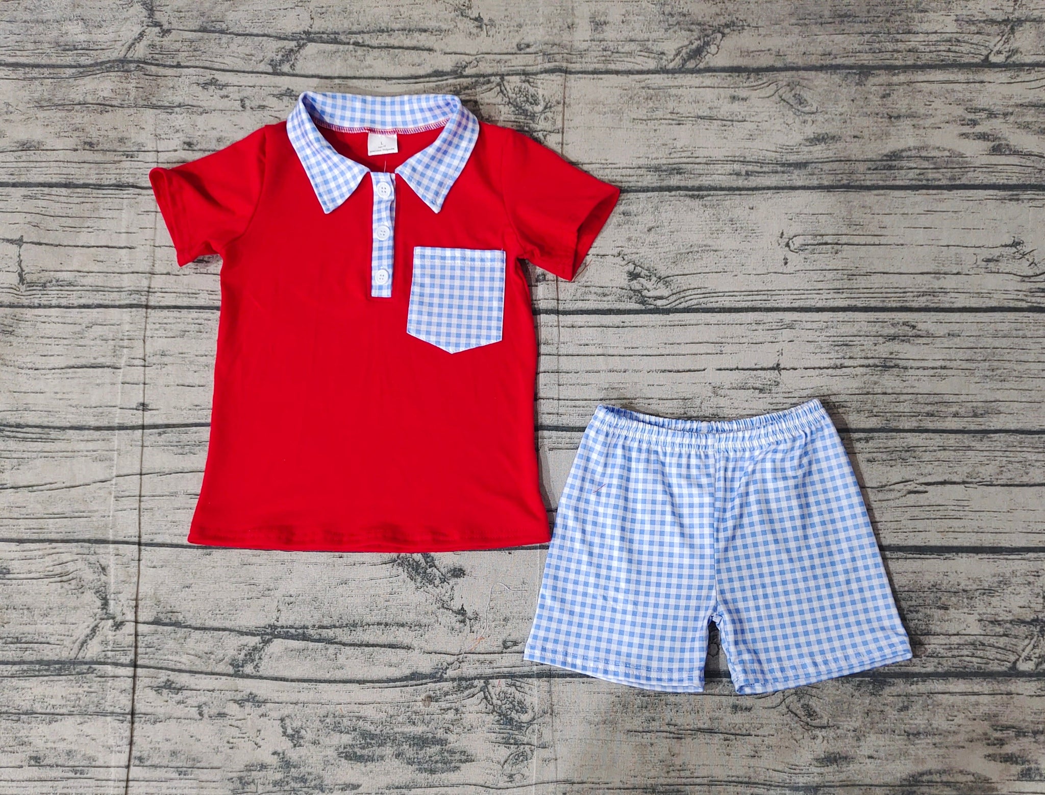 Baby Boys Red Pocket Shirt Checkered Shorts Clothes Sets