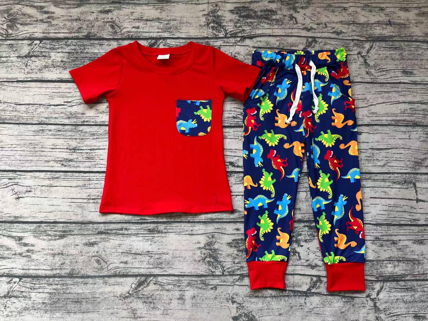 Baby Boys Red Short Sleeve Tee Shirts Dinosaur Pants Clothes Sets