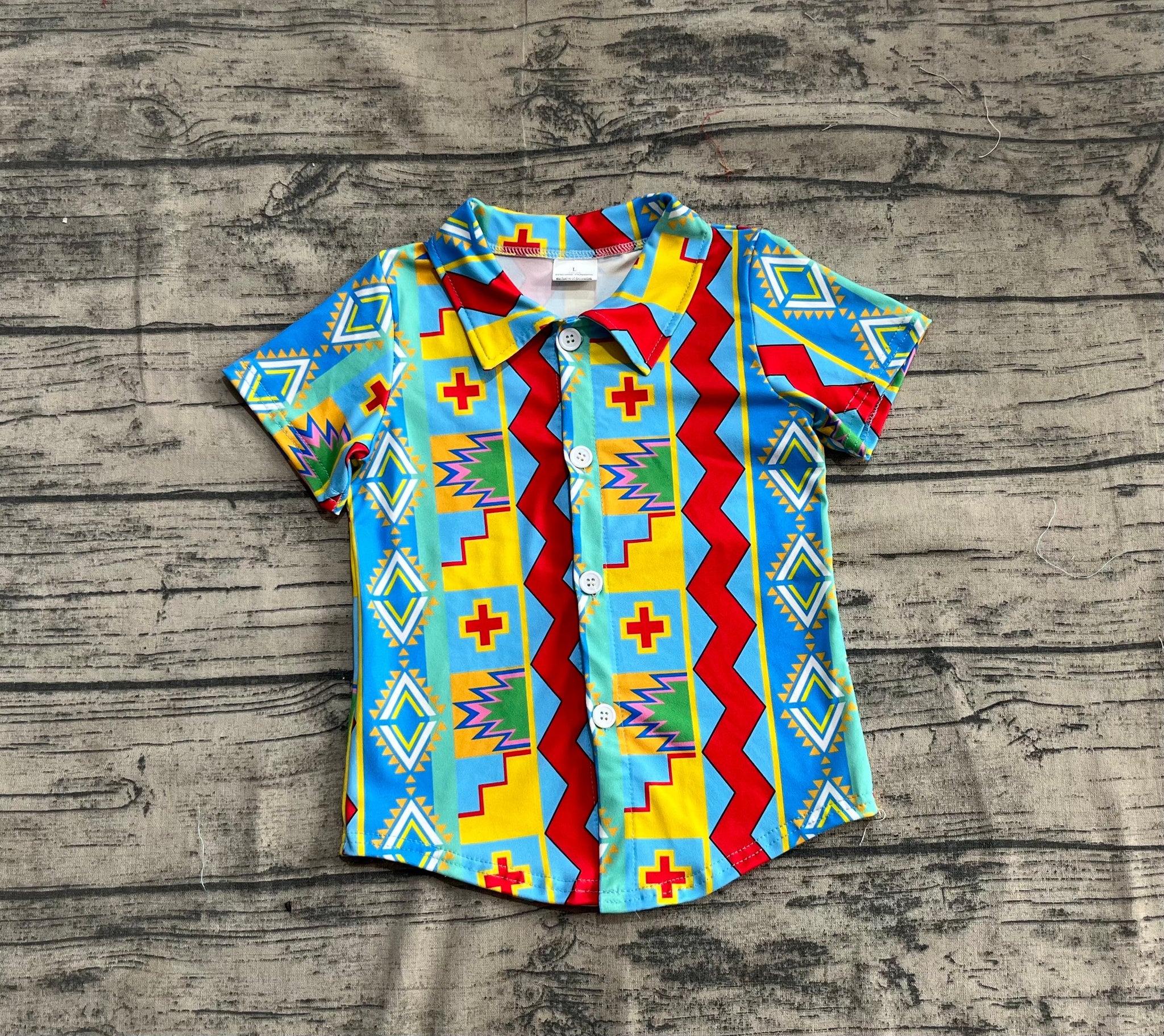 Baby Boys Short Sleeves Colorful Aztec Print Button Shirts Tops