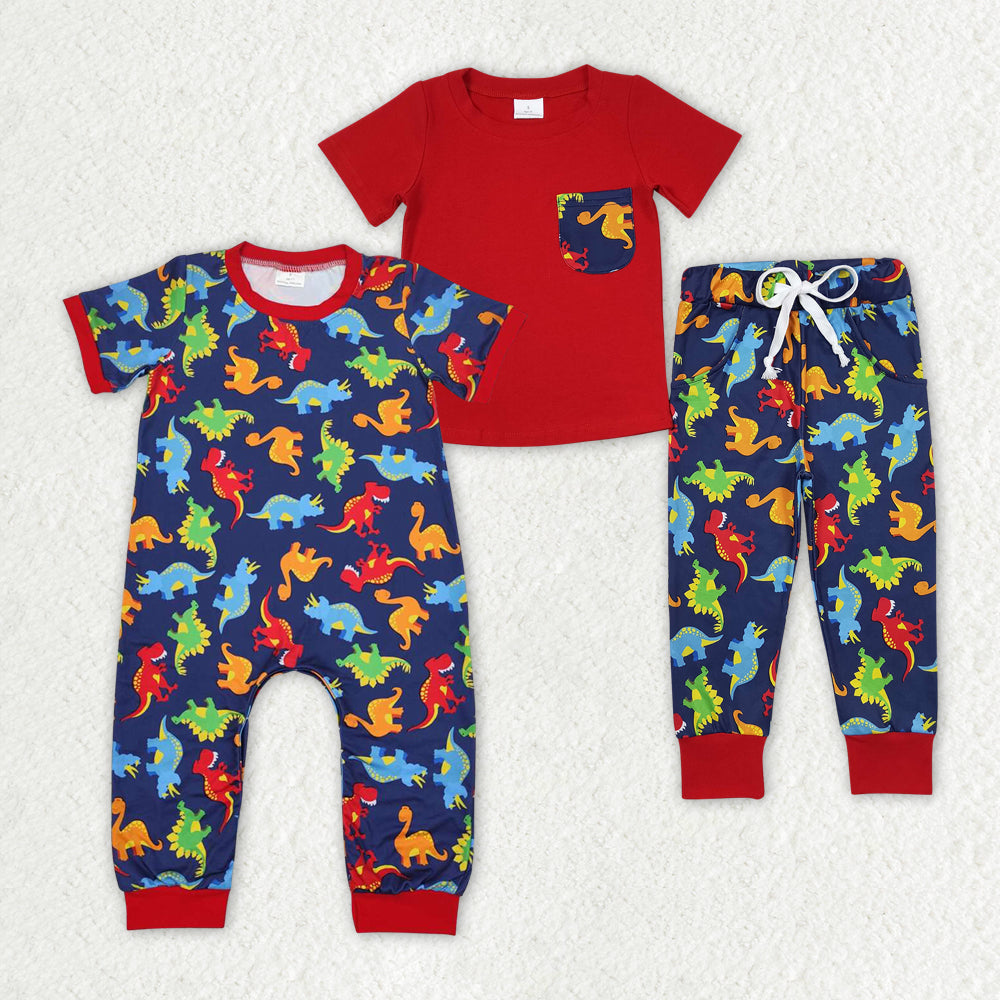 Baby Boys Sibling Rompers Red Dinosaur Pants Clothes Sets