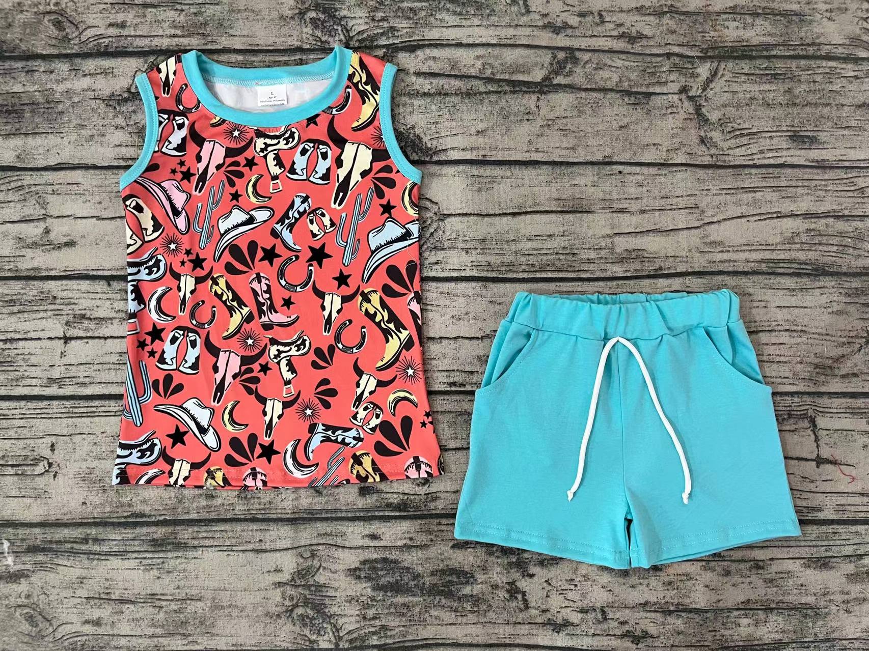 Baby Boys Sleeveless Boots Western Summer Shorts Sets