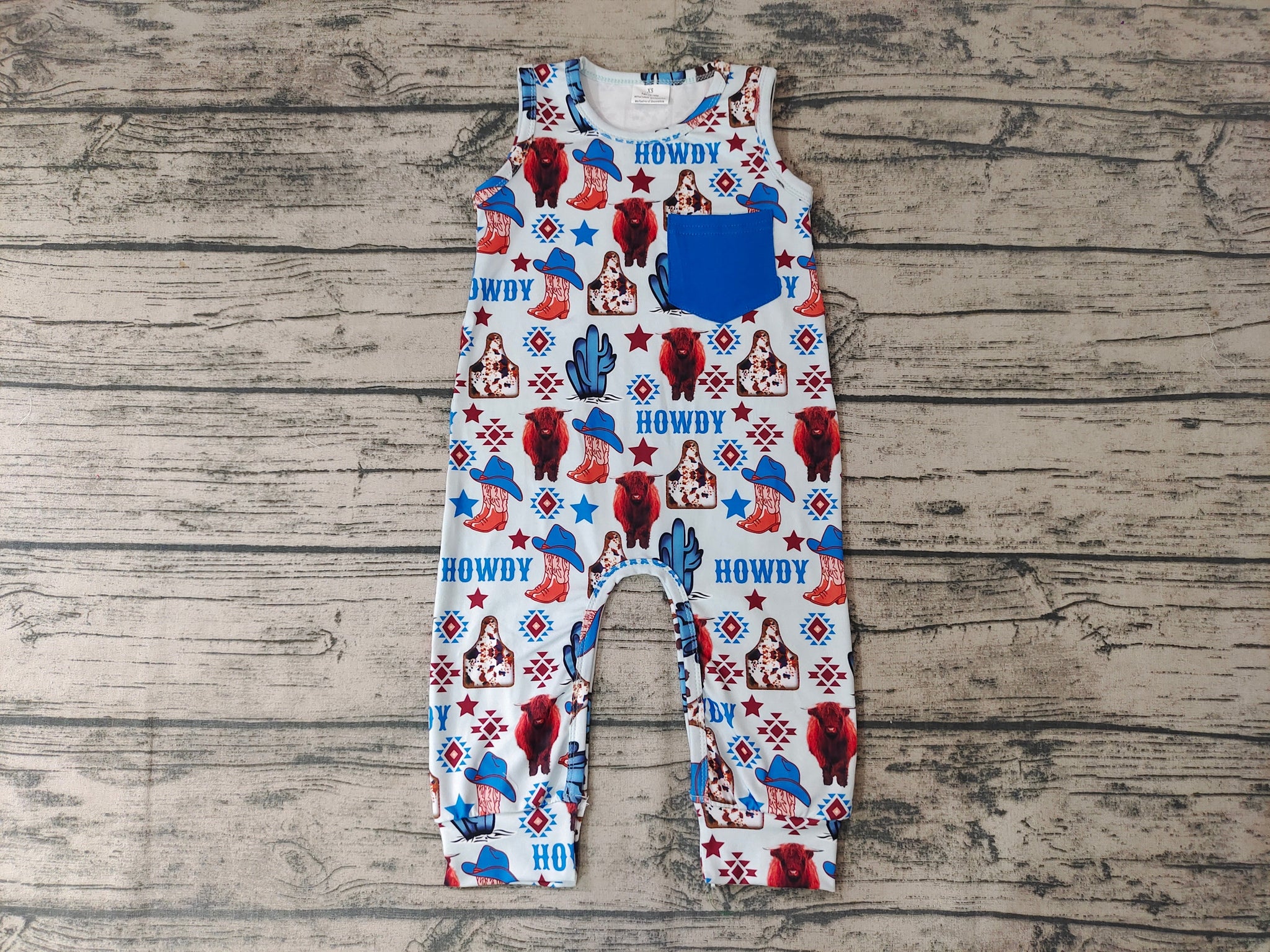 • Load image into Gallery viewer, Baby boys Sleeveless Cow Western rompers