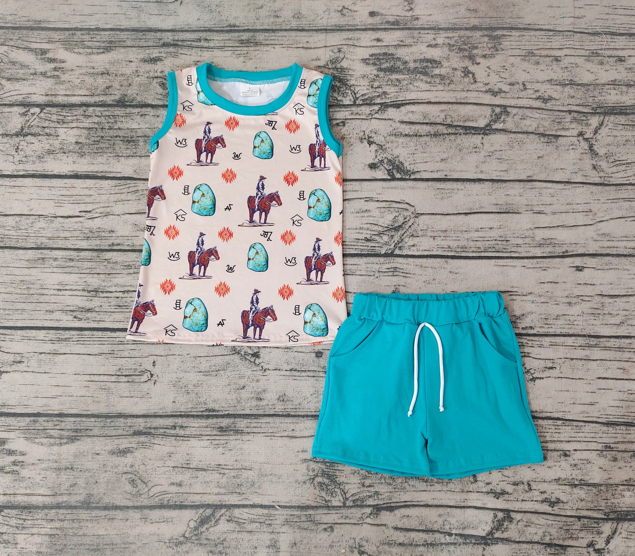 Baby Boys sleeveless tee shirt rodeo shorts western clothes sets