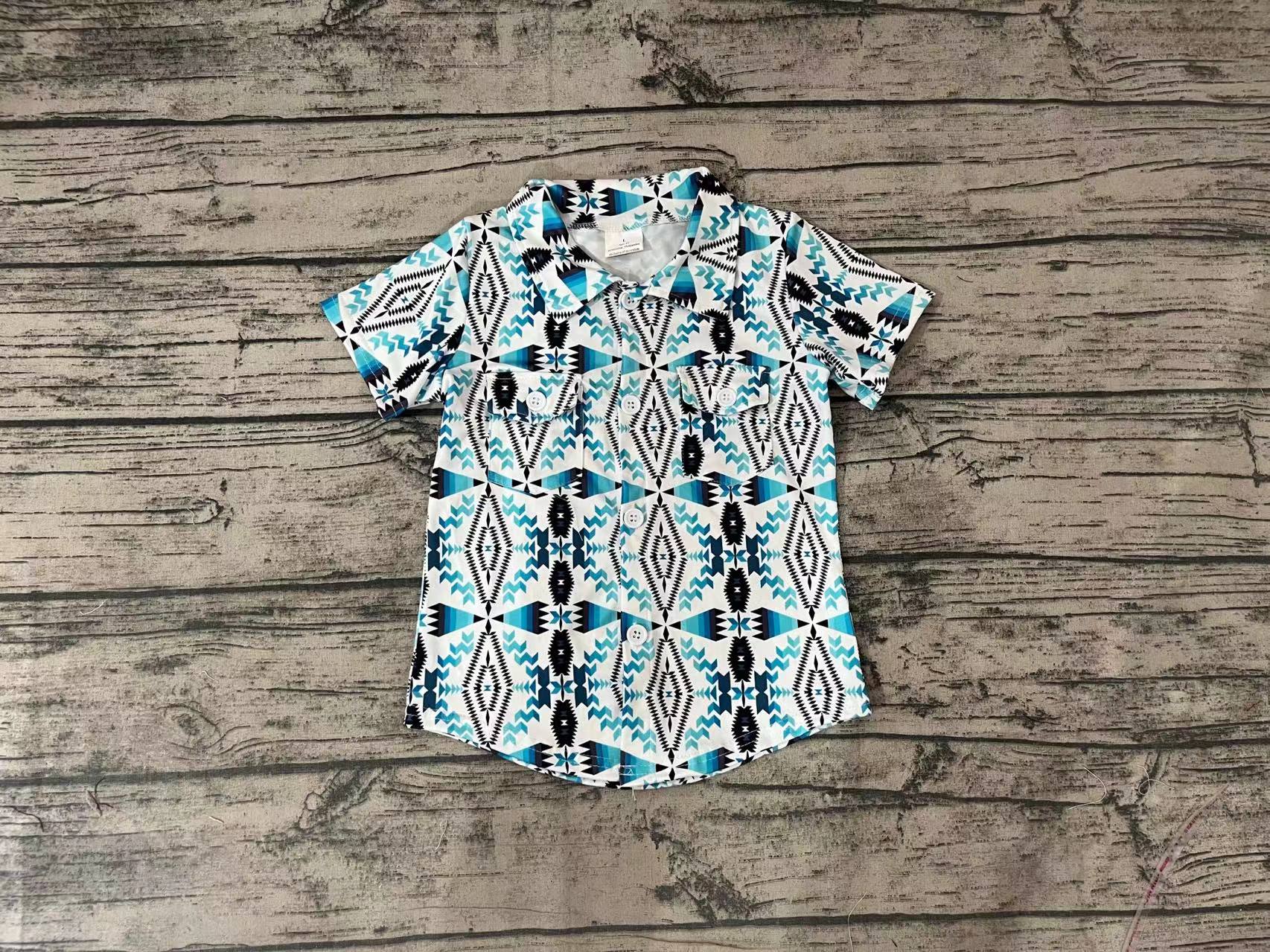 Baby Boys Teal White Aztec Western Short Sleeve Buttons Shirts Tops
