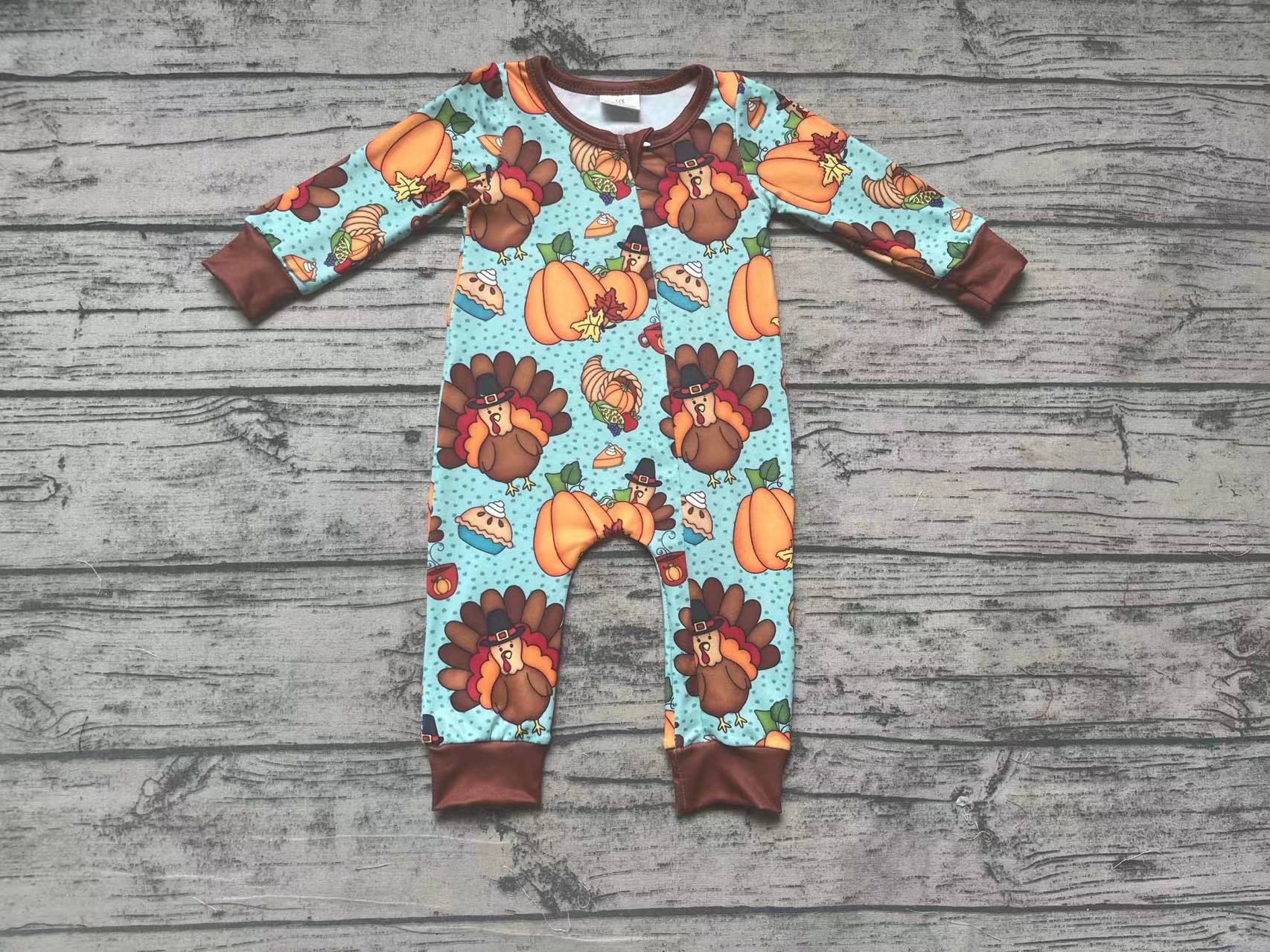 Baby Boys Thanksgiving Turkey Zip Long Sleeve Rompers