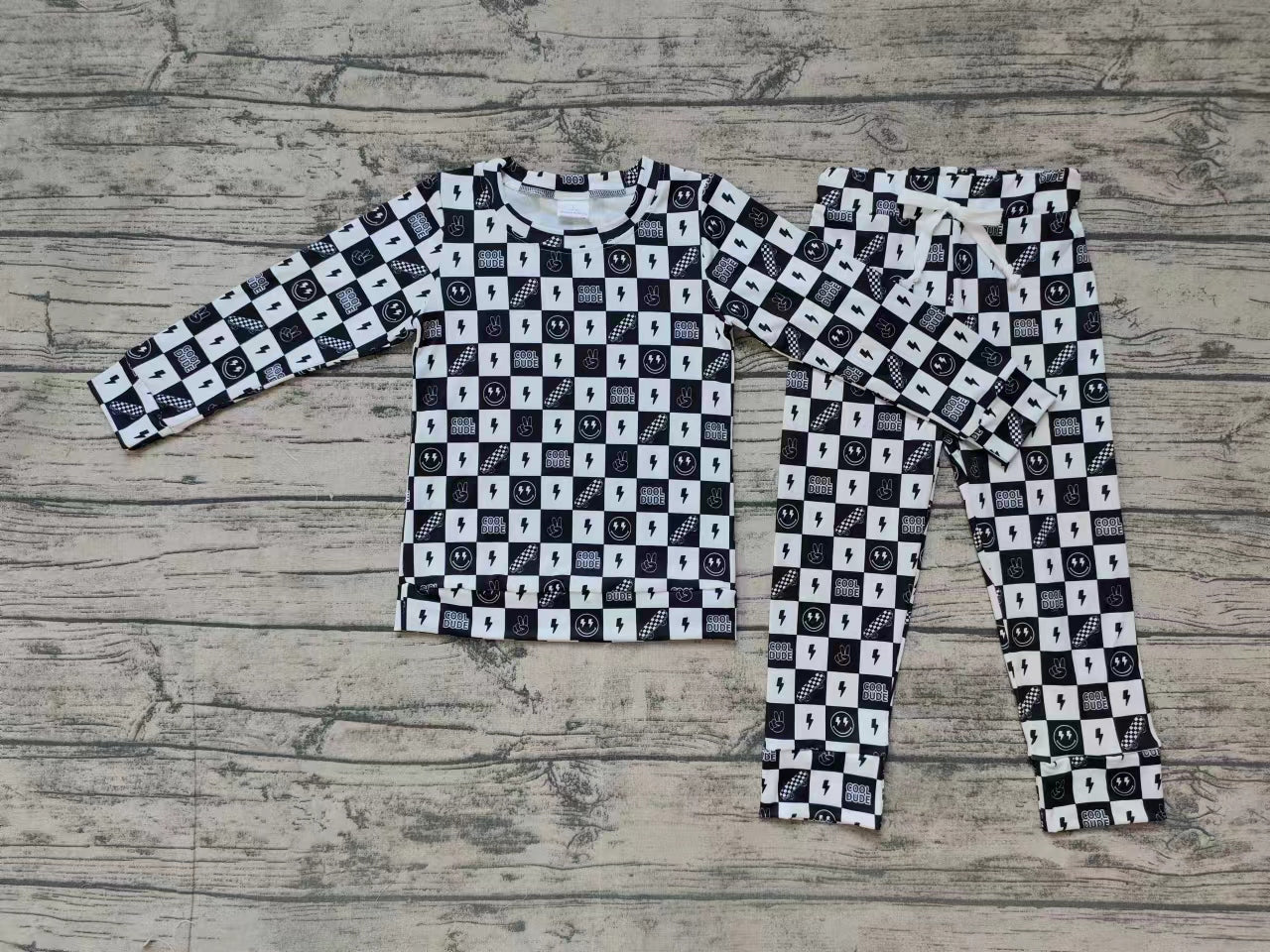 Baby Boys Western Black Checkered Top Pants Pajamas Clothes Sets