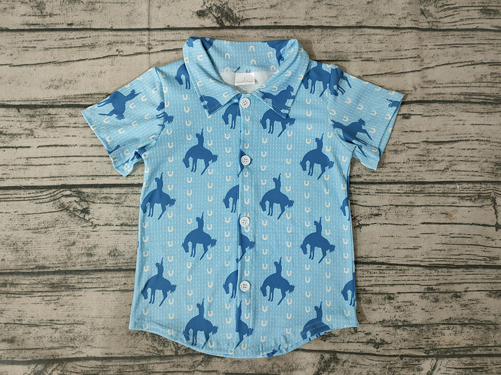 Baby Boys Western Blue Horse Short Sleeve Shirts Tops