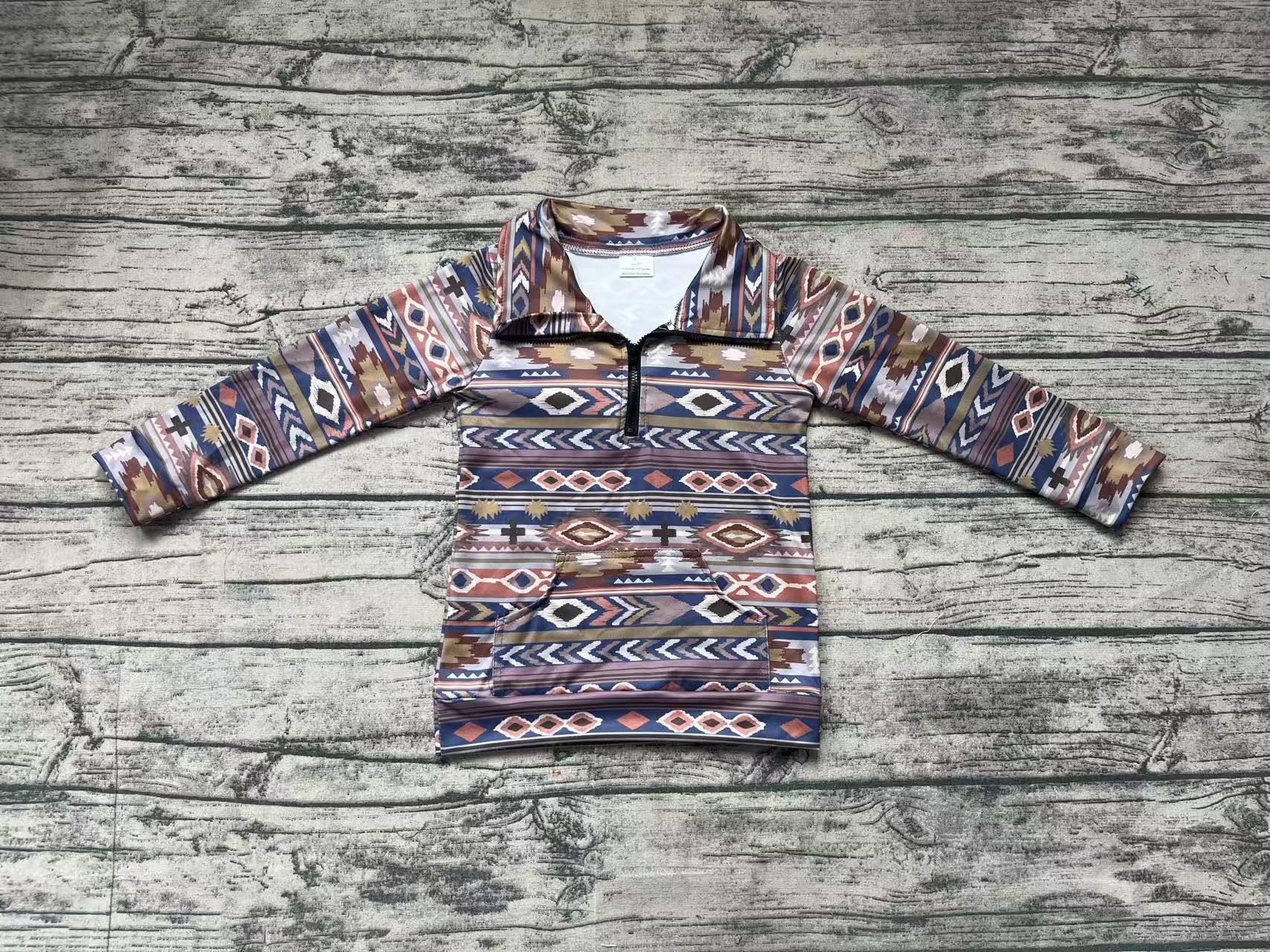 Baby Boys Western Brown Aztec Zip Pullovers Tee Shirts Tops