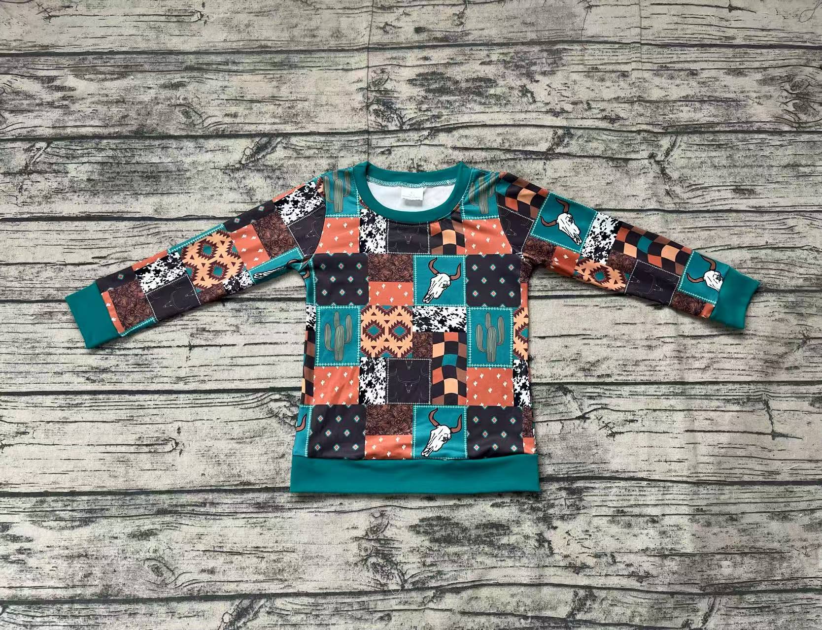 Baby Boys Western Cactus Cow Green Long Sleeve Tee Shirts Tops
