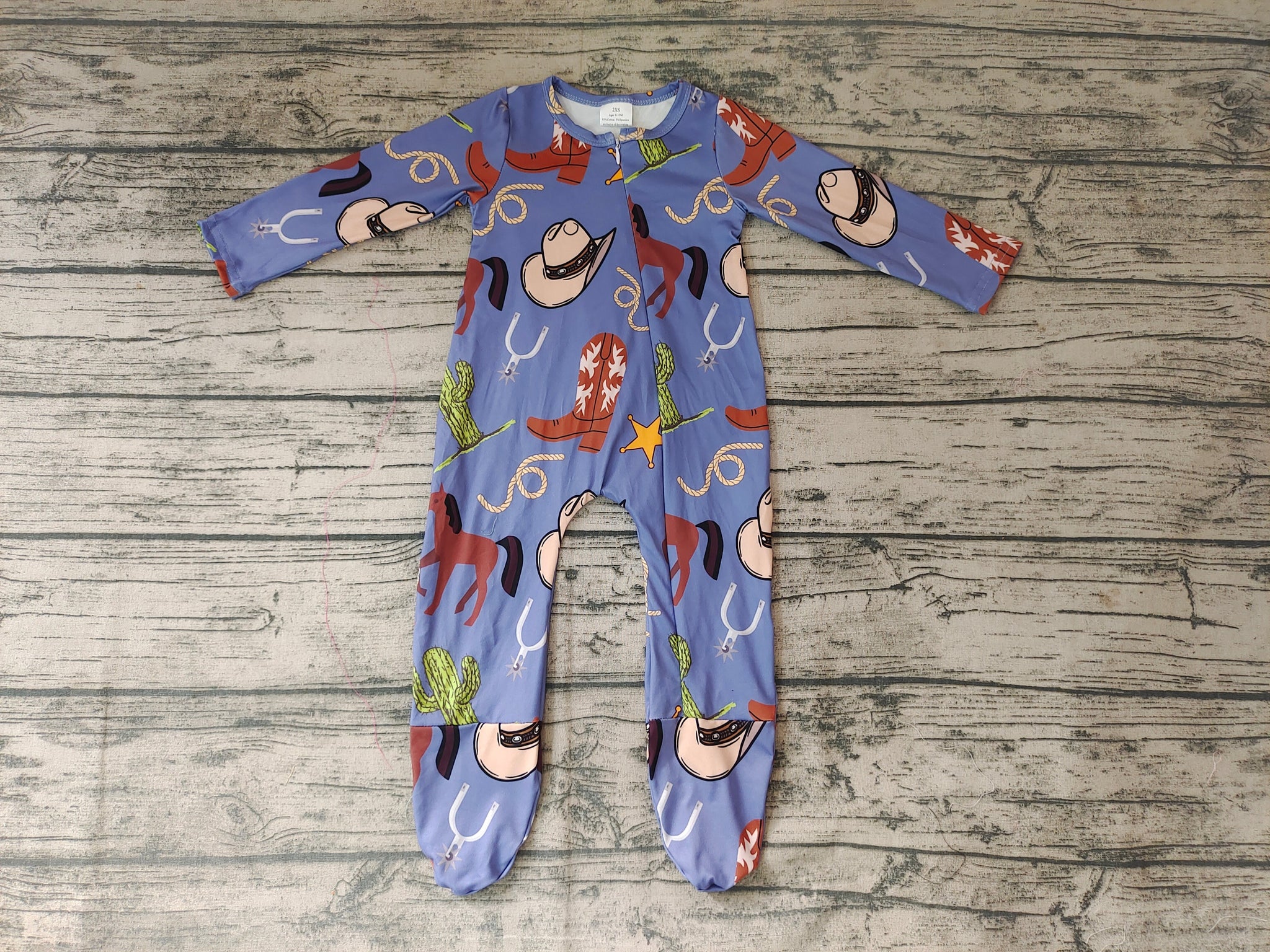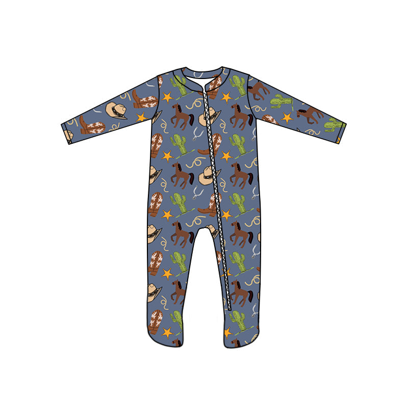 • Load image into Gallery viewer, Baby boys western horse zip rompers