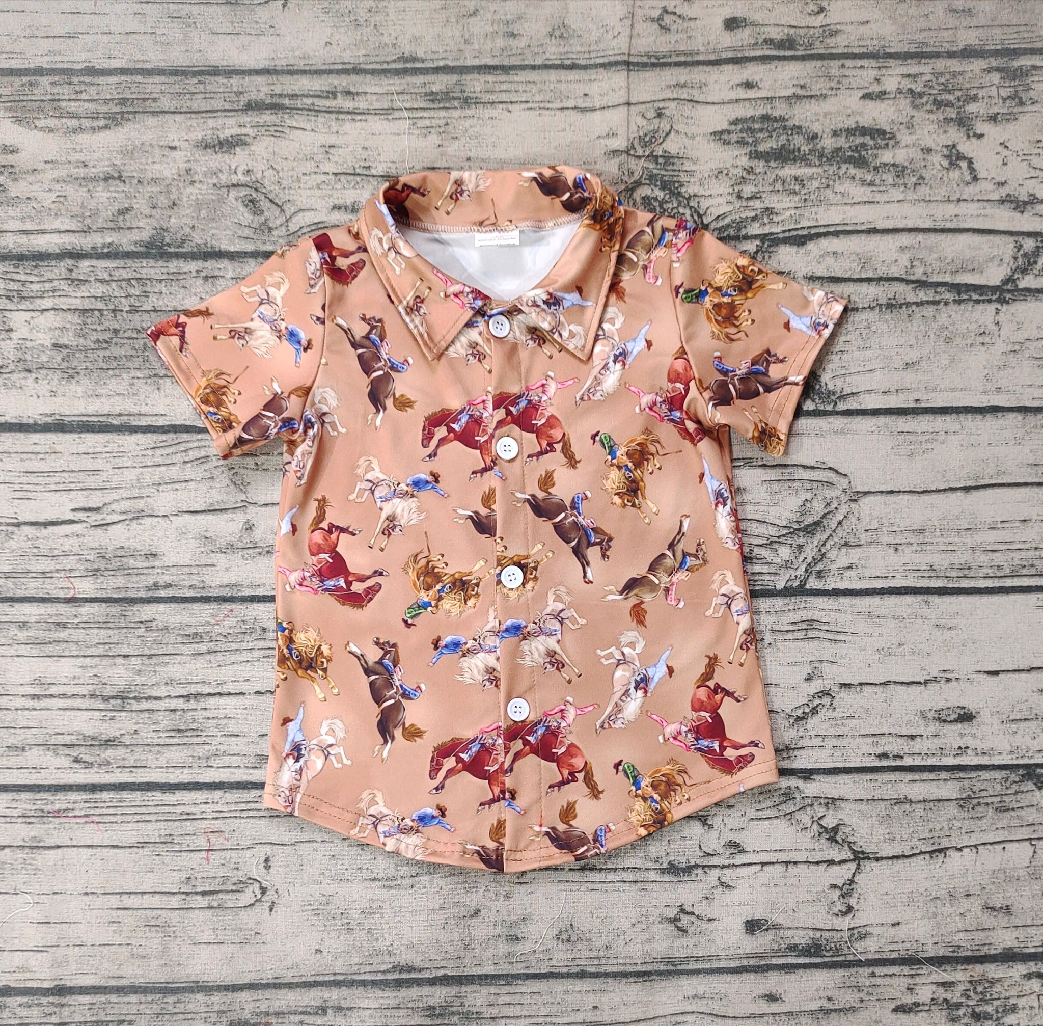 Baby Boys Western Rodeo Brown Buttons Short Sleeve Tee Shirts Tops
